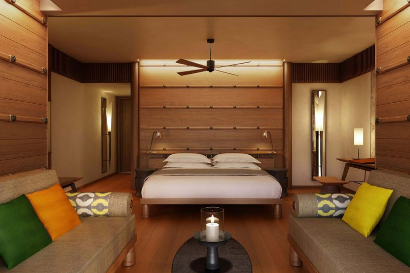 - 63 м2. Состоит из спальни, гостиной зоны, ванной комнаты с ванной и душевой кабиной, гардеробной, балкона с видом на бассейн, джунгли и море.