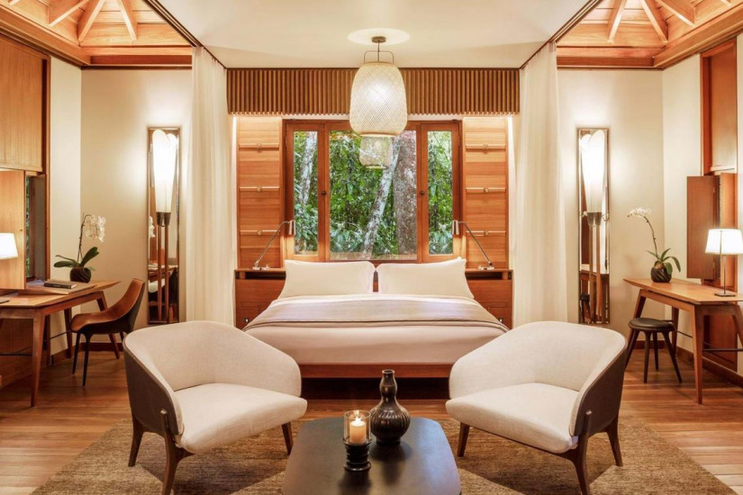 3500 м2. Уникальный номер, расположенный в тропическом лесу рядом с пляжем и в нескольких минутах ходьбы от The Beach Club. Состоит из трех просторных гостиных со столовыми зонами, пяти спален, двух бассейнов, зала для отдыха и игровых комнат. К услугам гостей услуги дворецкого и личного шеф-повара.