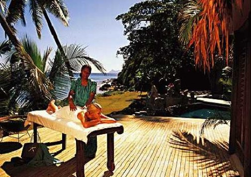 Отель расположен на втором по величине на Фиджи острове Вануа-Леву. В переводе с фиджийского диалекта название отеля означает “рай”. Каждая из шести вилл отеля органично вписана в склон холма, спускающийся к 150-ти метровой береговой линии. Мебель в виллах сделана из древесины кокосовых пальм, произрастающих на территории отеля. Здесь можно забыть о строгих деловых костюмах и телефонных звонках и расслабиться в первозданной природной обстановке, используя исключительно пляжную одежду и сандалии.
