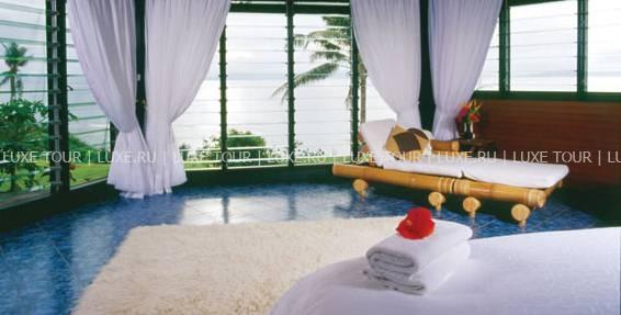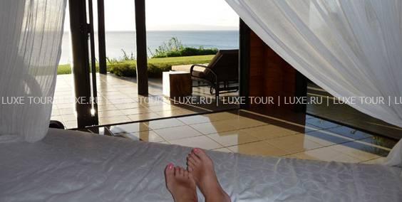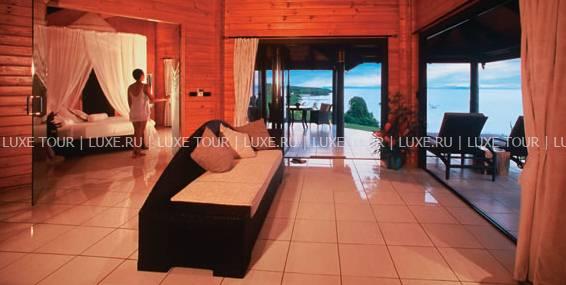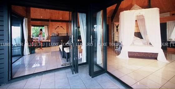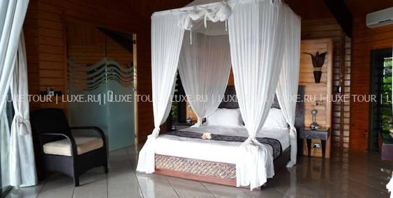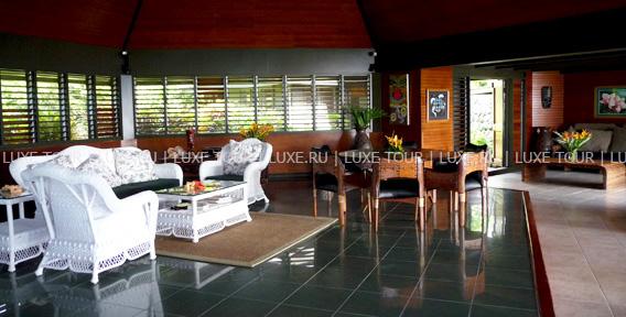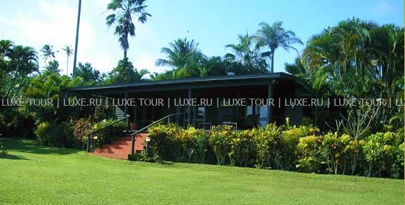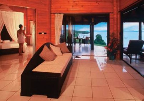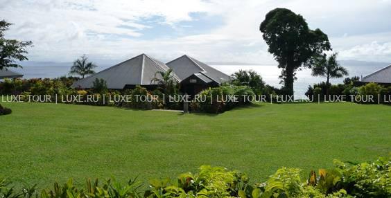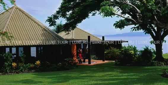 Светлые виллы с окнами во всю стену, свободно раскиданы среди ровных лужаек и построены в типичном стиле фиджийской деревни. Дизайн вилл сочетает современную элегантность и островной декор: традиционная континентальная мебель, яркие картины тропической тематики, плиточные полы и белоснежные драпировки. В ресторане отеля предлагаются деликатесы современной фиджийской и международной кухонь, дополненные винами, шампанским, коктейлями и прохладительными напитками. Также для гостей — небольшой СПА-центр, бассейн, центр дайвинга.