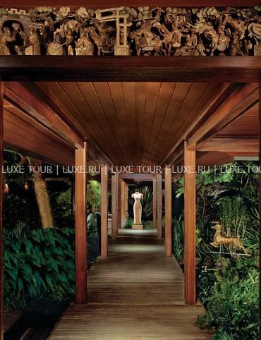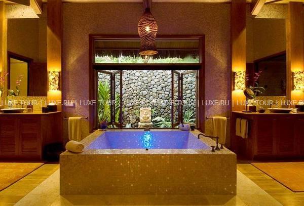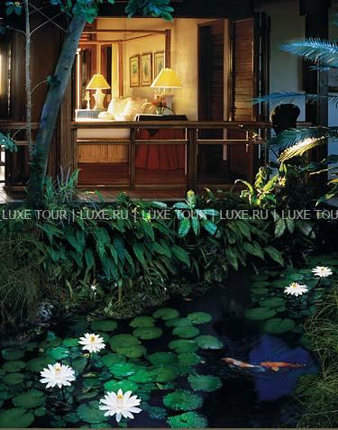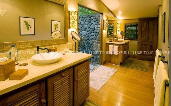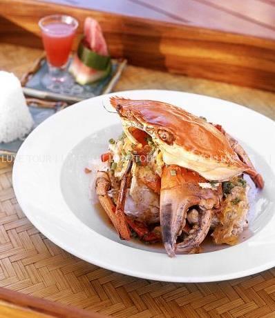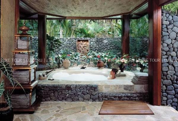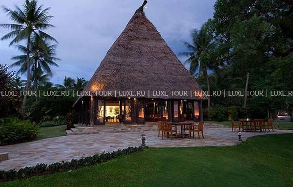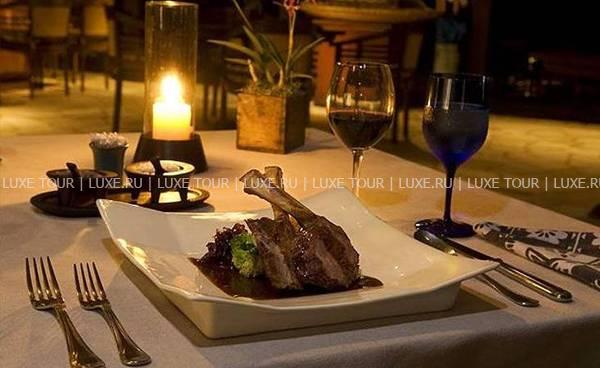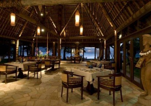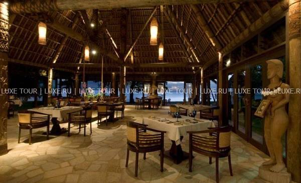 В ресторане отеля предлагаются лучшие деликатесы тихоокеанской и международной кухонь от четырех шеф-поваров; здесь много пикантных блюд из только что пойманной рыбы и свежайших морепродуктов, приправленных ароматными травами и зеленью (от сладкого шпината и укропа до японского редиса), посаженных строго по фазам луны в собственном огороде отеля. Два других шеф-повара отвечают за приготовление нежных тропических десертов с сочными авокадо, манго и гуавой. Учитываются диетические требования гостей.