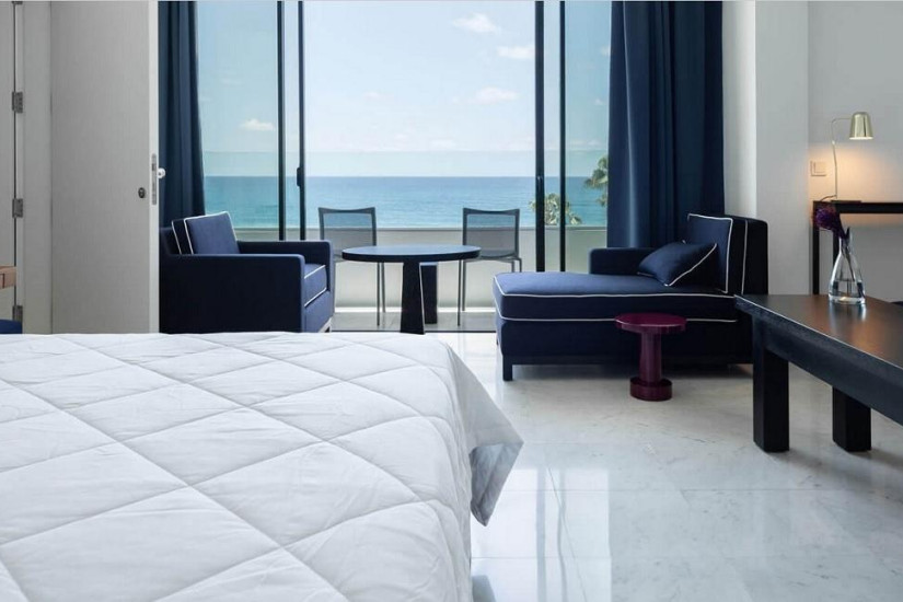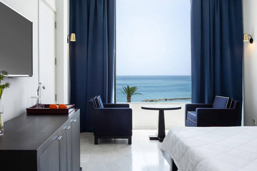 - 35 м2. Состоит из спальни с зоной отдыха, отделанной мрамором ванной комнаты с ванной, балкона с видом на море. Возможно: объединение с номерами Veranda Sea View Room или Terrace Sea View Room, и дополнительная кроватка для детей до 12 лет. Некоторые номера с балконом.
