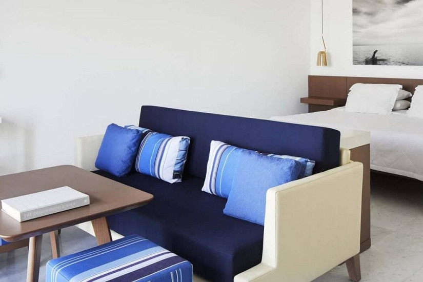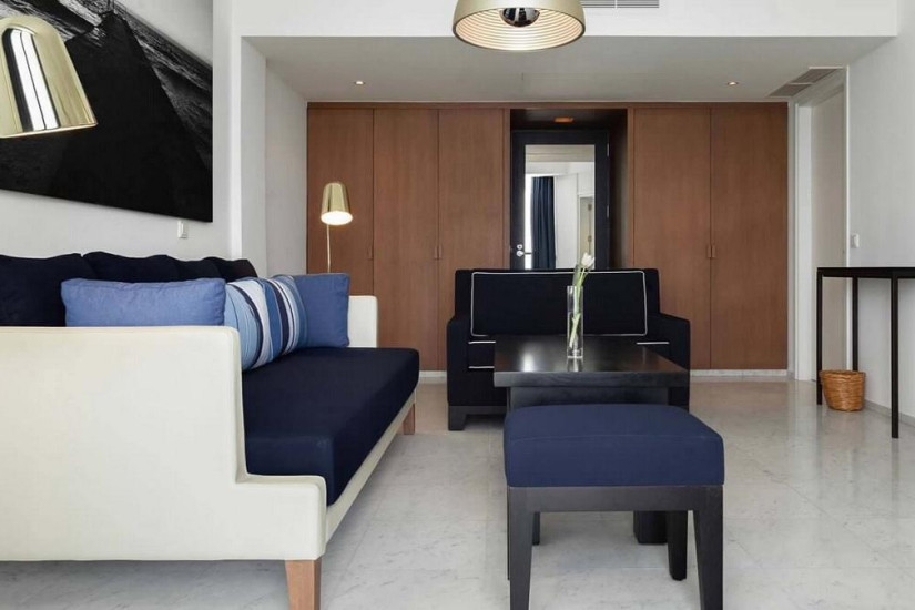 - 28 м2. Состоит из спальни с мраморными полами, ванной комнаты с ванной, балкона (4,5 м2) с видом на море. Возможно: объединение с номером Junior Suite, дополнительная кровать и кроватка для детей.
