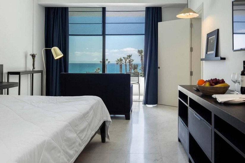 В отеле 189 номеров различных категорий, включая Guest Room и Suite. Номера выдержаны в светлых тонах, отличаются стильным современным декором и высоким уровнем комфорта, а из панорамных окон и с балконов открывается великолепный вид на лазурное море, Пафос и пышные тропические сады.