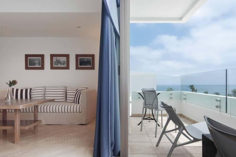 - 53 м2. Состоит из спальни, гостиной, двух ванных комнат (одна примыкает к гостиной), балкона (10 м2) с панорамным видом на море. Дополнительно в номере CD/DVD player, кофеварка. Возможна установка дополнительной кровати и кроватки для детей.