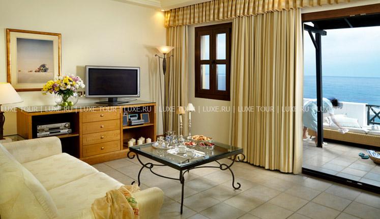 Нарядные коттеджи Mitsis Royal Mare Thalasso & Spa Resort, выполненные в греческом стиле, с черепичными крышами и балконами, украшенными резными перилами, расположены на берегу изумрудного Эгейского моря, в окружении ухоженного сада и множества сверкающих бассейнов. В номерах, оборудованных по последнему слову техники, — изысканные интерьеры в теплых тонах, с изящной мебелью, отделкой из дерева, оригинальными украшениями, балконами и террасами с чудесным видом на море и тропические сады. Отель располагает уникальным Оздоровительным/спа центром Royal Mare Thalasso, входящим в 10 лучших мировых Центров Талассотерапии. Здесь, на территории площадью в 4000 кв.м, есть всё для релаксации и восстановления сил: водный комплекс AguaRoyal с бассейнами, залами Aguagym и Aguastream, сауны, турецкая баня, тренажерный зал, площадка для сквоша, спортивные залы, солярий, диетический ресторан Candia, спа бутик, салон красоты с 11 процедурными кабинетами, где высокопрофессиональные специалисты предлагают широкий спектр услуг по уходу за здоровьем и внешностью, включая индивидуально подобранные диеты, процедуры и программы, способные удовлетворить самые взыскательные вкусы.