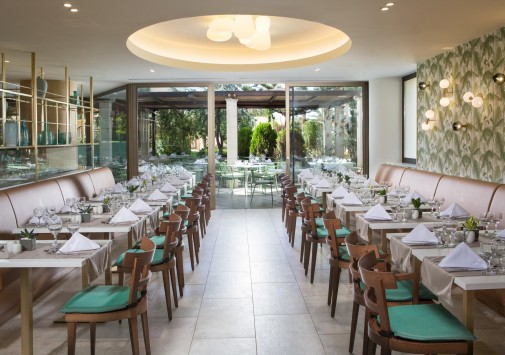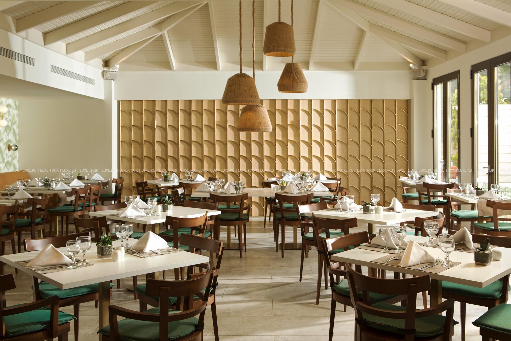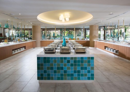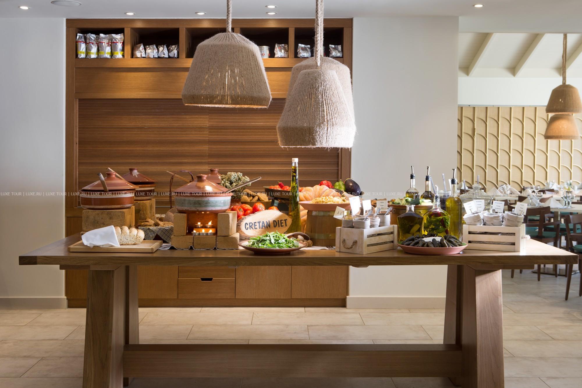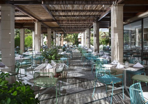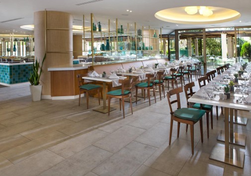 В главном ресторане отеля предлагаются богатые буфеты блюд греческой и интернациональной кухонь, а также устраиваются тематические ужины: греческий, средиземноморский, итальянский и азиатский вечера, вечер омаров, барбекю, дегустации вин и т.д.