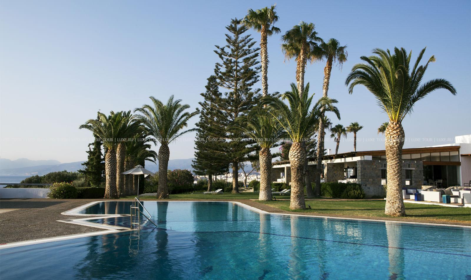 Отель расположен на северо-восточном побережье острова Крит, рядом с главными достопримечательностями острова. Комплекс отеля состоит из главного задания и отдельных бунгало, построенных в традиционном критском стиле среди садов на берегу моря. Интерьеры оформлены в современном стиле и украшены картинами и гравюрами. В отеле есть SPA-центр, 2 теннисных корта, 2 уютных ресторана, таверна и 2 бара, магазин, парковка для автомобилей, а также предлагаются программы для детей и молодоженов.
