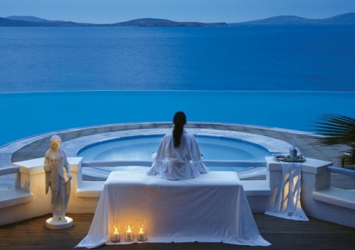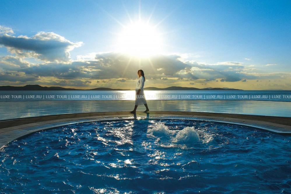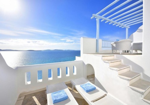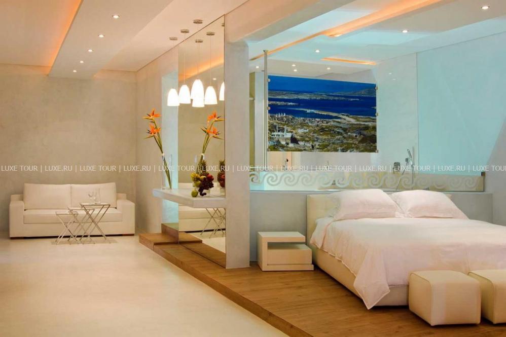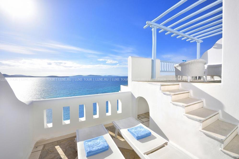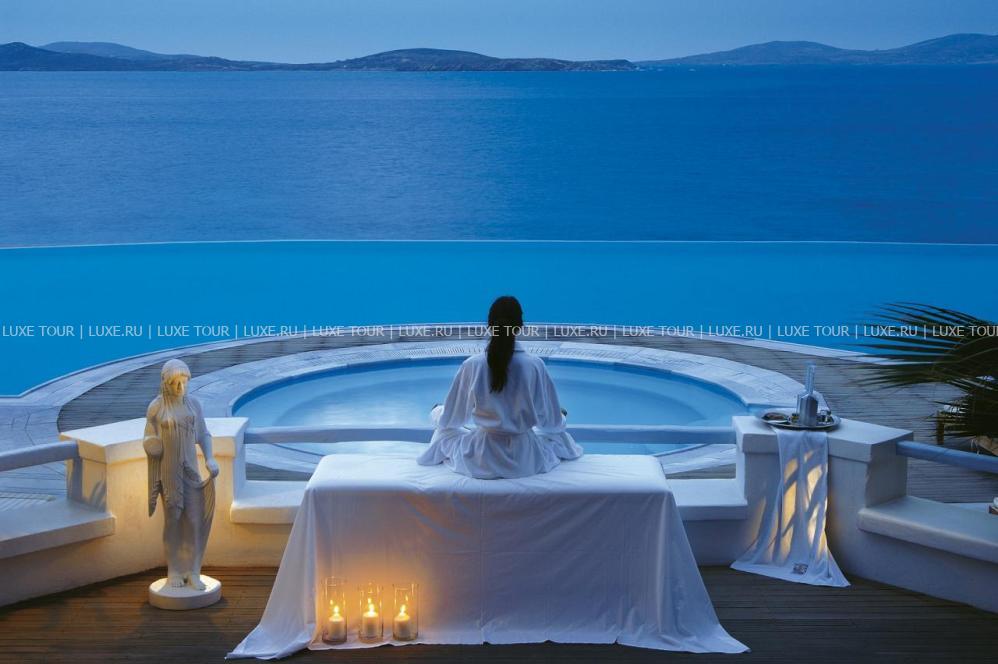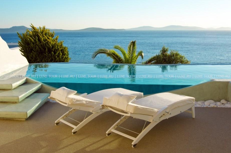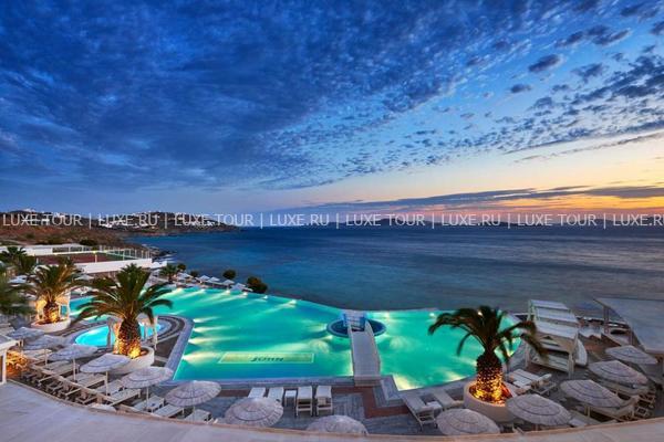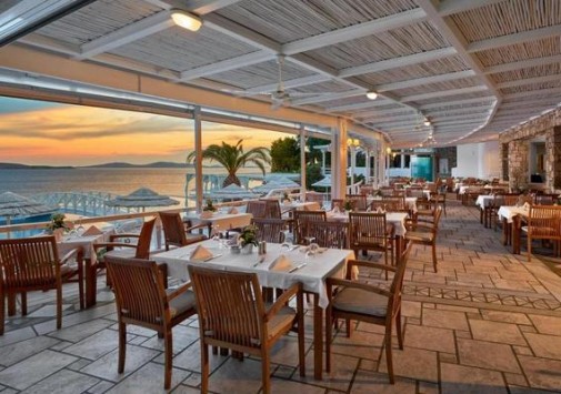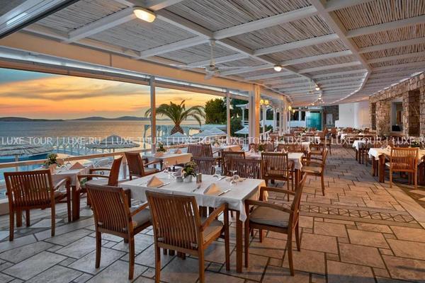 Ресторан a la carte Symposium, с великолепным видом на море и остров Делос, представляет изысканные блюда греческой и международной кухонь.