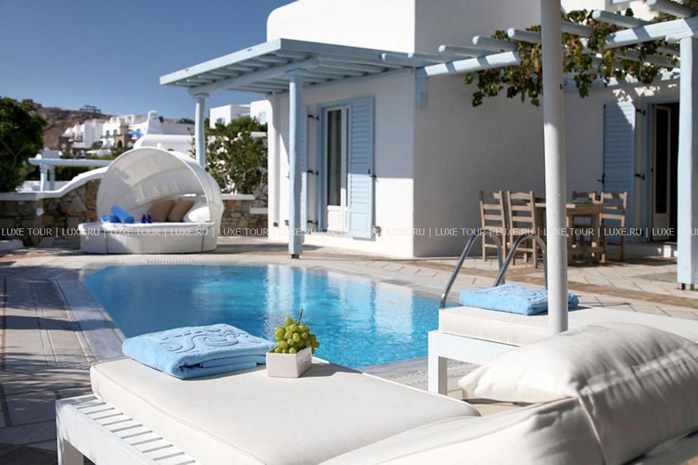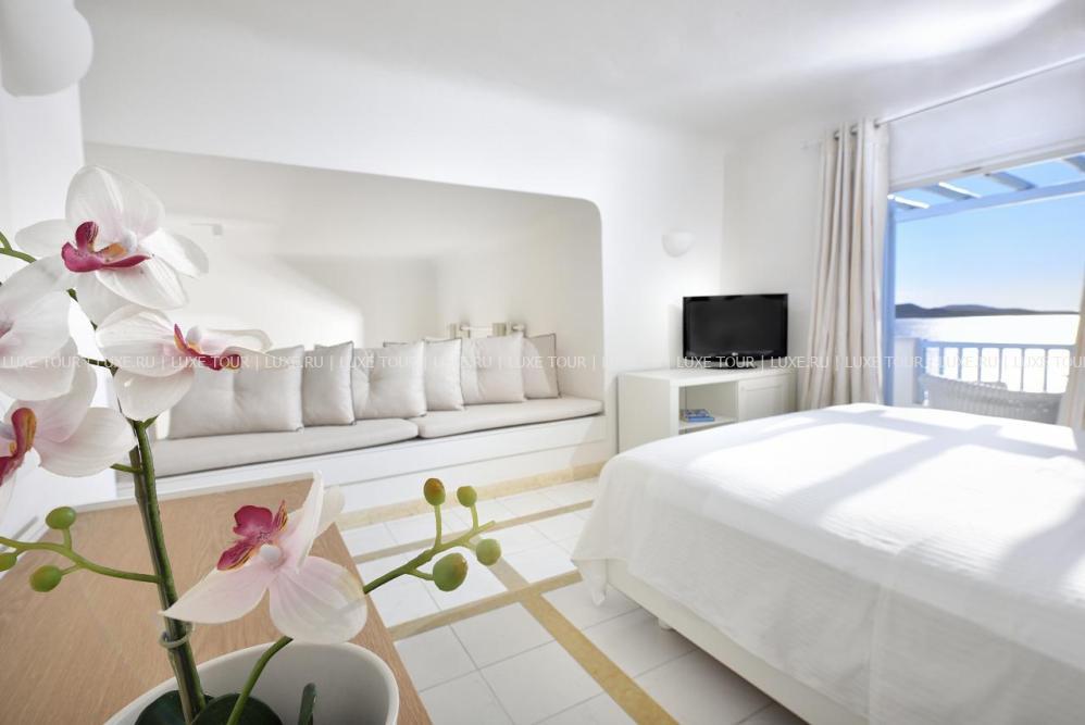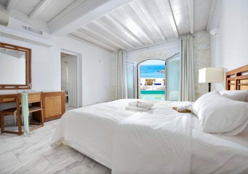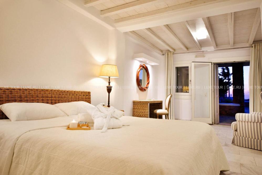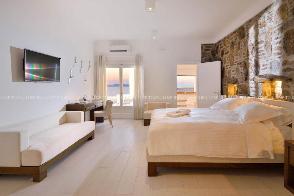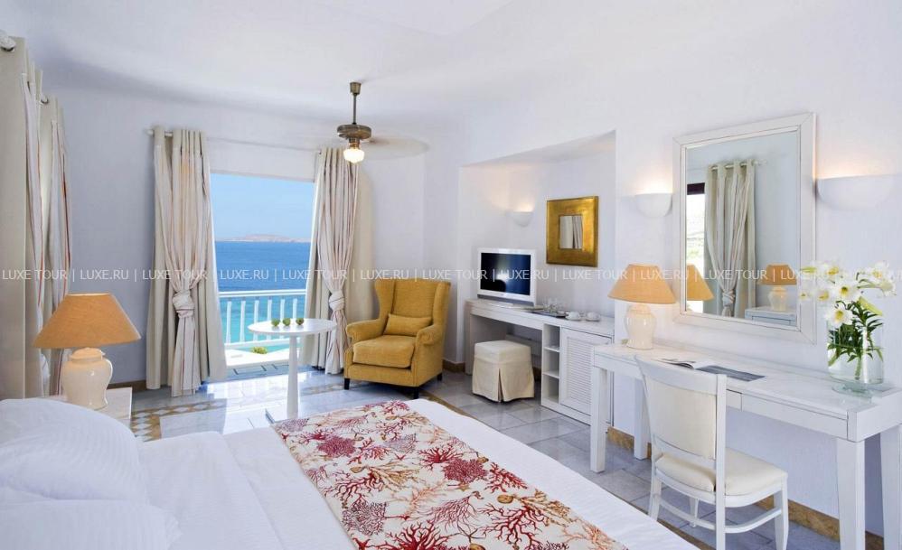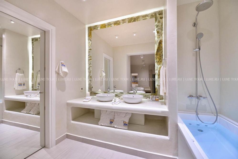 Белоснежные здания нового комплекса Saint John Hotel Villas, выполненные в традиционном стиле островов Киклады, расположены на живописном побережье лазурного Эгейского моря. В номерах, оборудованных по последним технологиям, — элегантные интерьеры в светлых тонах, с удобной мебелью, арками и украшениями в стиле острова Миконос, балконами и террасами с чудесным видом на море, остров Делос и окружающие ландшафты. В отеле открыт Оздоровительный/СПА Центр Aphrodite Beauty Center с крытым подогреваемым бассейном, джакузи, грязевыми ванными, сауной, турецкой баней, солярием, тренажерным залом, массажными и процедурными кабинетами, предлагающими широкий спектр услуг по уходу за здоровьем и внешностью, также работает салон красоты с парикмахерской, косметическим кабинетом, кабинетами маникюра и педикюра. Saint John Hotel Villas располагает уникальным парком площадью 2000 м2, с открытыми террасами для отдыха, садом, и самым большим на острове Миконос бассейном с морской водой — площадью 700 кв.м, также есть детский бассейн, теннисные корты, предлагаются водные виды спорта, недалеко находится центр верховой езды.