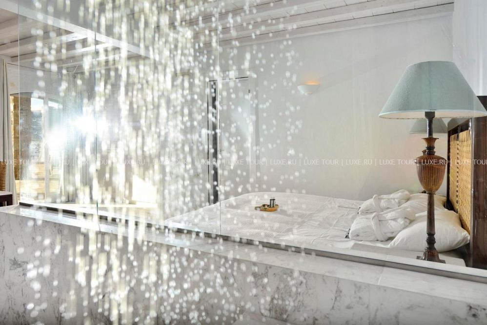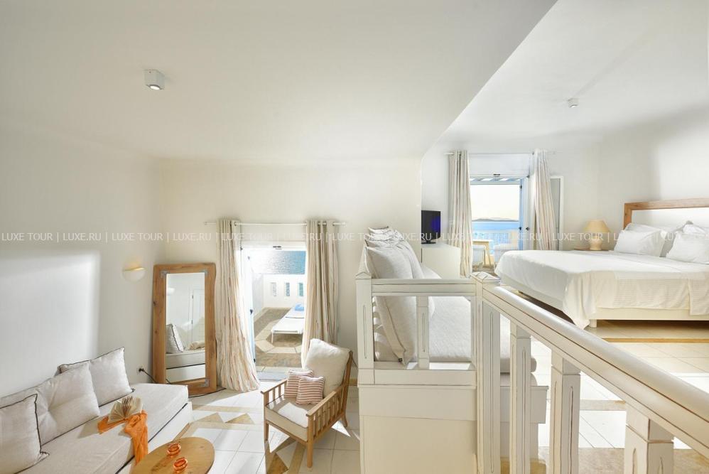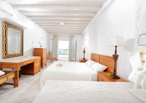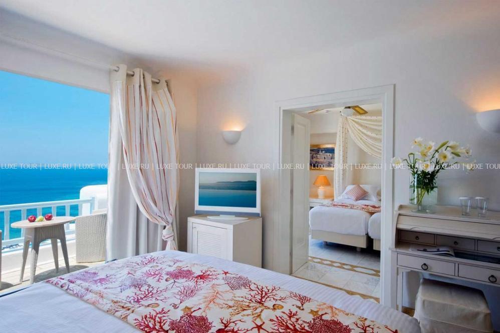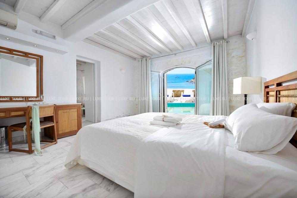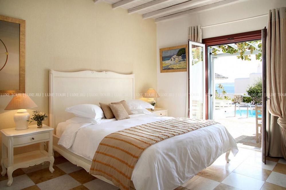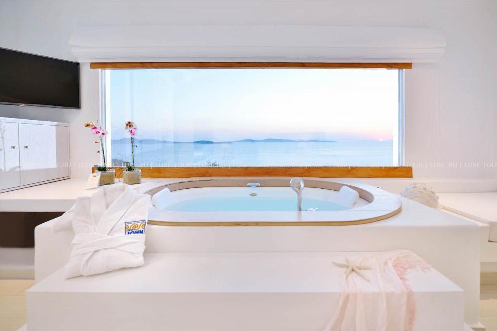 Белоснежные здания нового комплекса Saint John Hotel Villas, выполненные в традиционном стиле островов Киклады, расположены на живописном побережье лазурного Эгейского моря. В номерах, оборудованных по последним технологиям, — элегантные интерьеры в светлых тонах, с удобной мебелью, арками и украшениями в стиле острова Миконос, балконами и террасами с чудесным видом на море, остров Делос и окружающие ландшафты. В отеле открыт Оздоровительный/СПА Центр Aphrodite Beauty Center с крытым подогреваемым бассейном, джакузи, грязевыми ванными, сауной, турецкой баней, солярием, тренажерным залом, массажными и процедурными кабинетами, предлагающими широкий спектр услуг по уходу за здоровьем и внешностью, также работает салон красоты с парикмахерской, косметическим кабинетом, кабинетами маникюра и педикюра. Saint John Hotel Villas располагает уникальным парком площадью 2000 м2, с открытыми террасами для отдыха, садом, и самым большим на острове Миконос бассейном с морской водой — площадью 700 кв.м, также есть детский бассейн, теннисные корты, предлагаются водные виды спорта, недалеко находится центр верховой езды.