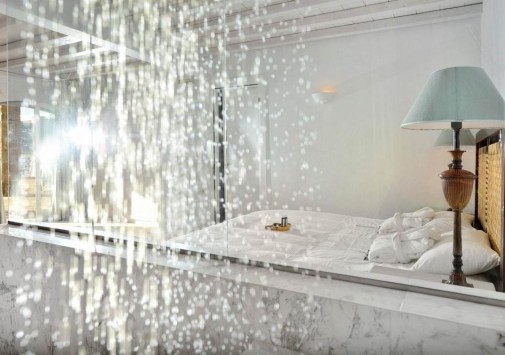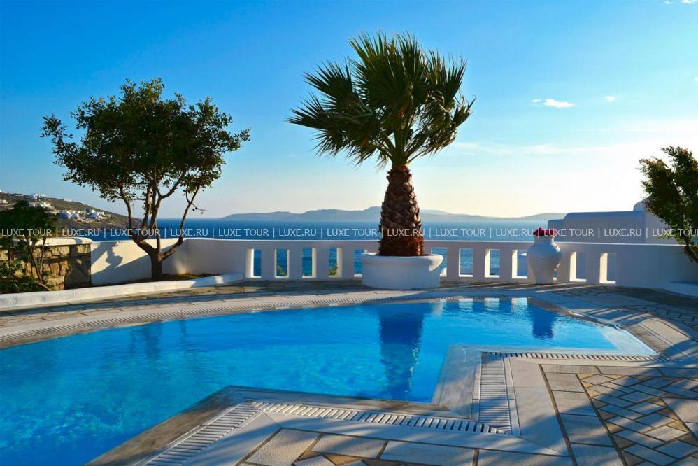 На территории отеля располагается просторный парк площадью 2000 кв.м, с террасами, садом, и самым большим на острове Миконос бассейном с морской водой — площадью 700 кв.м, а также детским бассейном, есть теннисные корты, предлагаются водные виды спорта, недалеко находится центр верховой езды.