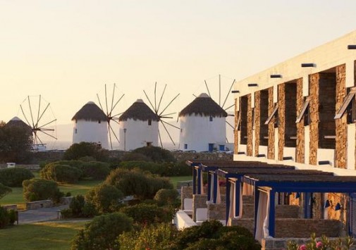 Отель расположен на острове Миконос, в 5 минутах езды от центра города, порта и аэропорта. Недалеко от отеля находится живописная улица бутиков и фешенебельных магазинов Kato Mili, а также легендарные ветряные мельницы. Mykonos Theoxenia Hotel был построен в 60-х годах прошлого века в традиционном кикладском стиле, на берегу моря, среди пышного благоустроенного парка, по проекту известного архитектора Ариса Константинидиса. В настоящее время он взят под охрану государства, как памятник архитектуры инновационного стиля. При постройке отеля использовался местный камень и мастерство местных ремесленников. Недавно отель был полностью реконструирован с участием представительной команды экспертов и архитекторов, а также известного дизайнера интерьеров Ангелоса Ангелопулоса. Однако реконструкция не затронула первоначального облика этого архитектурного шедевра. В комплекс отеля входит часовня для бракосочетаний и крещения младенцев. В отеле есть клуб здоровья, бассейн, уютный ресторан и бар, причал для яхт, а также предлагаются программы для детей и молодоженов.