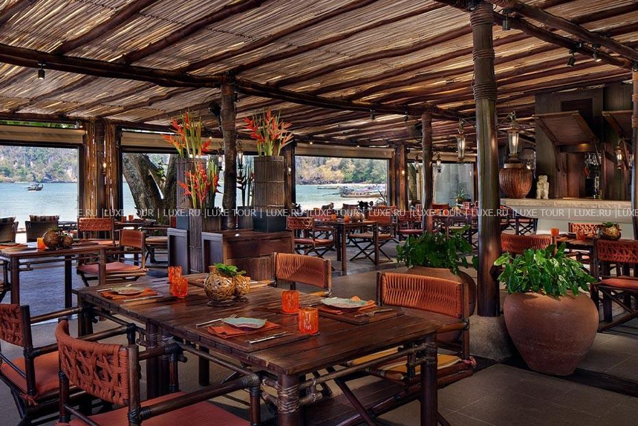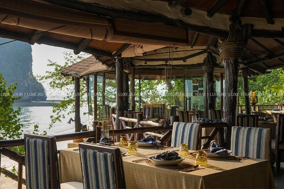 В элегантных ресторанах предлагаются деликатесы тайской и западной кухонь, а вечерами звучит живая музыка. Также можно отведать блюда традиционной кухни Таиланда, любуясь восхитительным видом на окружающие ландшафты. К услугам гостей – несколько современно оснащенных конференц-залов, магазин сувениров, детский клуб. Rayavadee – это настоящий райский уголок среди красивейшей природы тайского побережья.