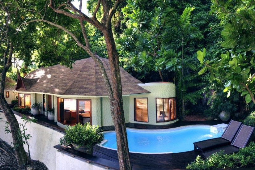- 115 м2. Двухэтажный павильон, состоит из спальни, гостиной, ванной комнаты, мебелированной террасы, бассейна.