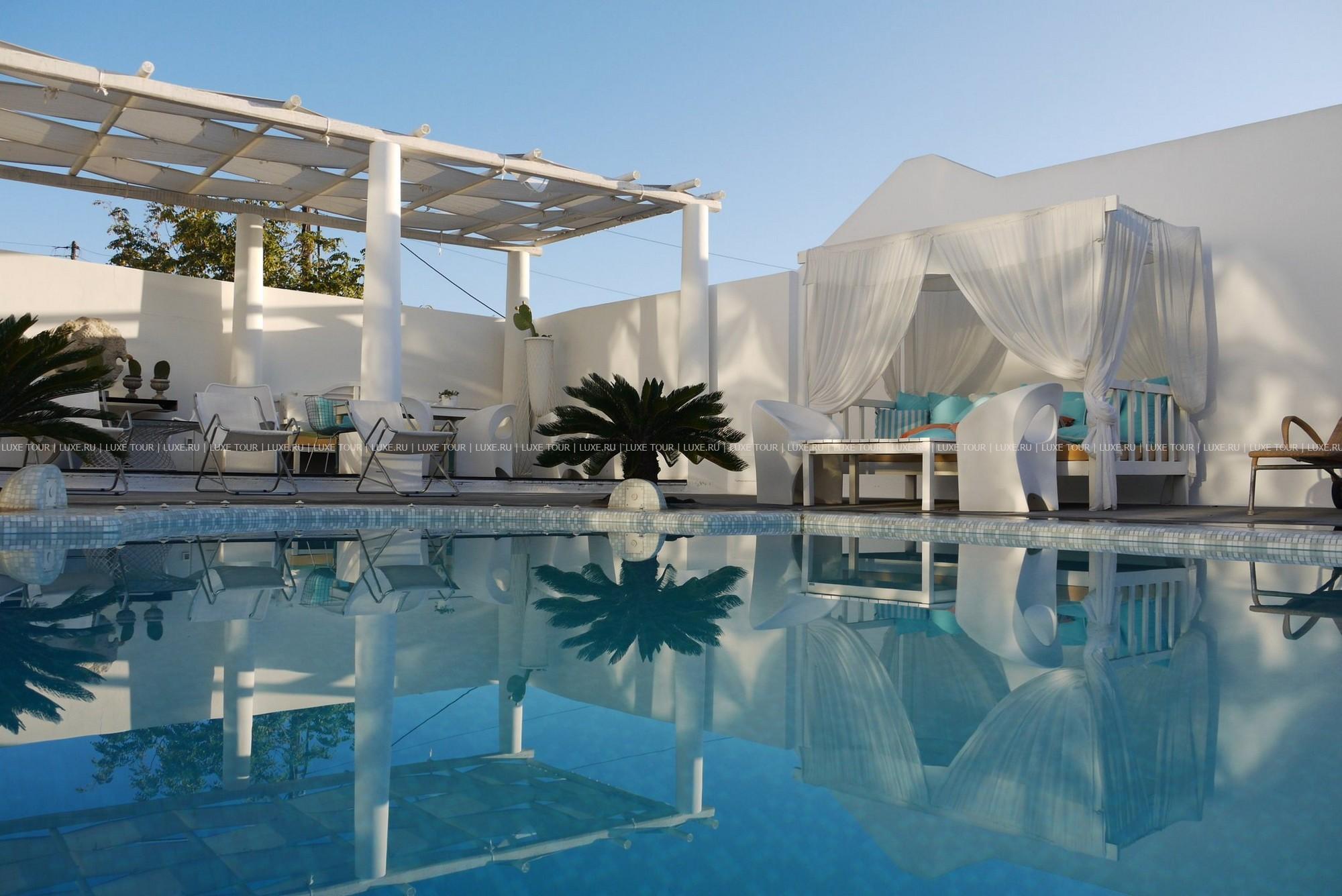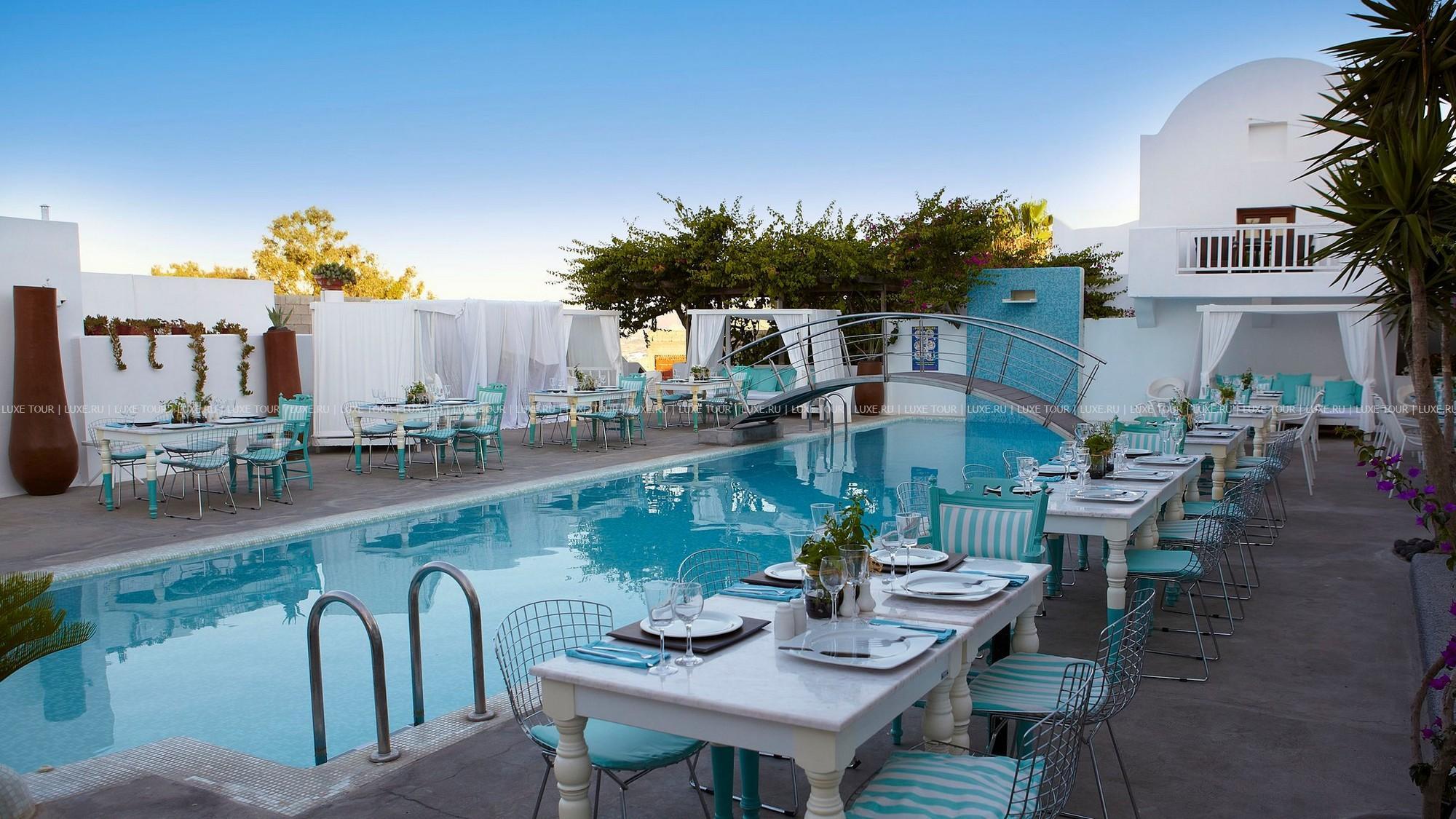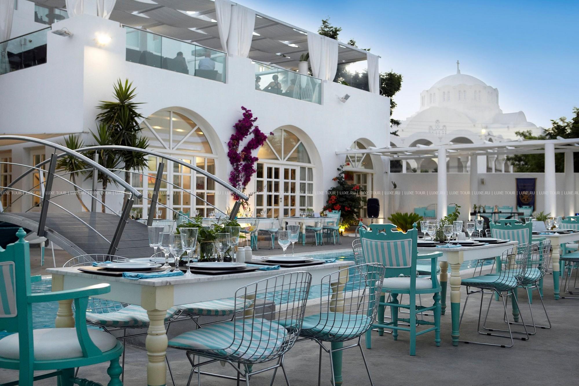 Белоснежные здания Aressana Hotel & Suites Санторини расположены в центре Фиры — древней столицы архипелага, в окружении благоухающего сада с лазурным бассейном. Отель назван в честь богини, чье имя было найдено во время раскопок в манускриптах, датируемых 1500 г.до н.э. Архитектура и интерьеры Aressana Hotel & Suites Санторини представляют необычную эклектику самобытного колорита Санторини и смелые дизайнерские решения известного греческого архитектора Димитриса Тситсоса, по проекту которого в 2008 году в отеле была проведена полная реновация. В элегантном спа центре — настоящем оазисе в стиле zen, наполненном утонченными ароматами и звуками таинственной музыки, гости могут насладиться эксклюзивными процедурами, основанными на применении натуральной продукции Algotherm, а в ресторане и двух барах — отведать отменные блюда, приготовленные из местных органических продуктов.
