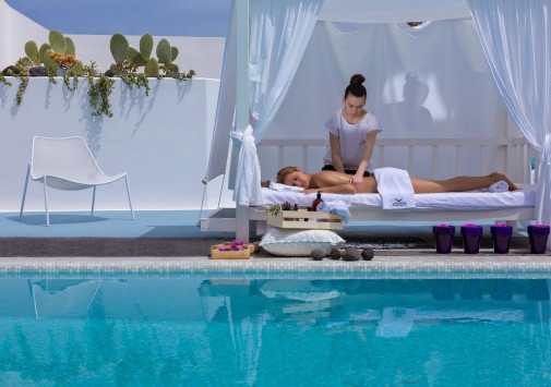 В отеле открыт великолепный спа центр Teffsion Kallos, включающий зону релаксации с гидромассажной ванной, хаммамом и термокроватями, фитнес-зал, салон красоты и процедурные кабинеты, где предложен широкий выбор услуг по уходу за телом и лицом с использованием натуральной продукции и эксклюзивных методик известного бренда Algotherm, а также уникальных природных ингредиентов острова Санторини, например, черного вулканического песка.