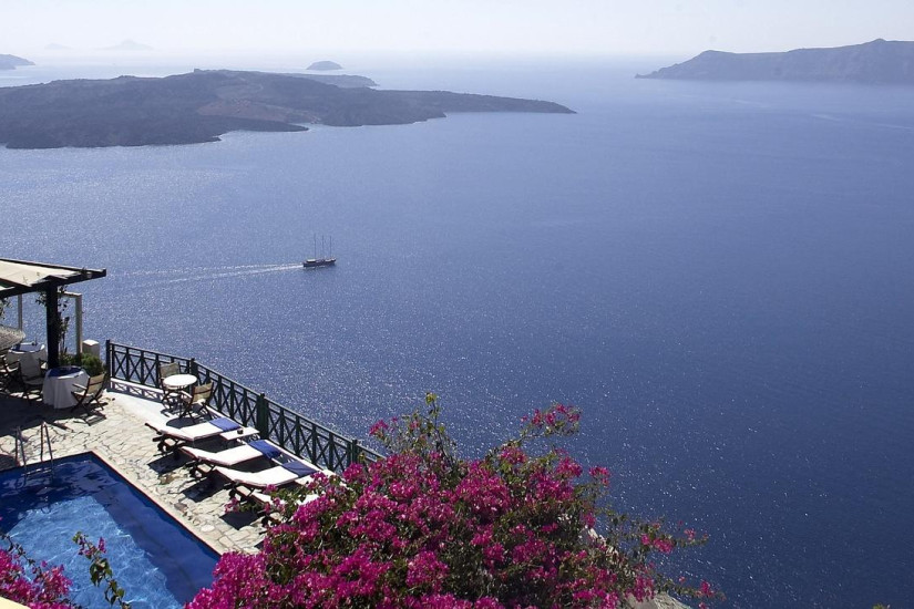 В отеле есть номера 6-и различных категорий, включая Studio, Junior Suite, Traditional Suite, Honeymoon Suite, Family Suite, Dana VIP Suite. Номера оформлены в традиционном греческом стиле: светлые стены, коврики на полу, на окнах — ставни темно-коричневого цвета. Во всех номерах есть полностью оборудованные мини-кухни, в номере Dana VIP Suite — отдельная кухня. В некоторых комнатах — сводчатые потолки. Из окон открывается вид на море и вулканический остров.