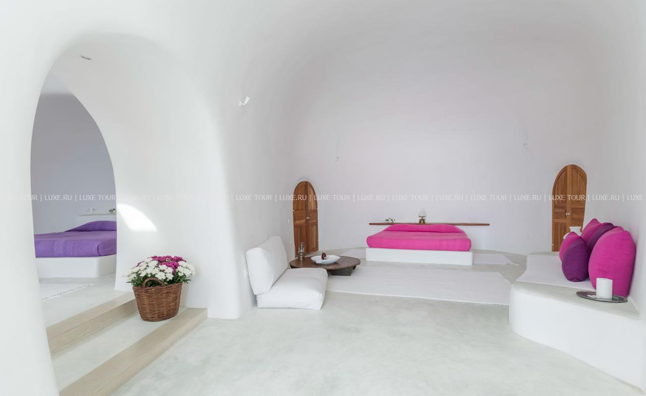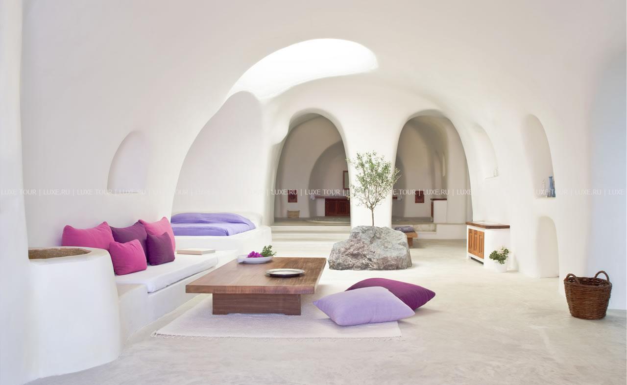 Perivolas Lifestyle Houses окружает огромный зеленый массив (14 тыс. кв. м), состоящий из виноградников и парка, в котором растут дикие фиговые деревья, герань, кактусы, фуксии и другие растения. В отеле неповторимый дизайн номеров: комнаты напоминают просторные белоснежные пещеры со сводчатыми потолками. В отеле есть собственный фитнес-центр, парная, сауна, джакузи под открытым небом, массажный кабинет, библиотека, ресторан, бар и кафе; для любителей активного отдыха — предусмотрены водные виды спорта.