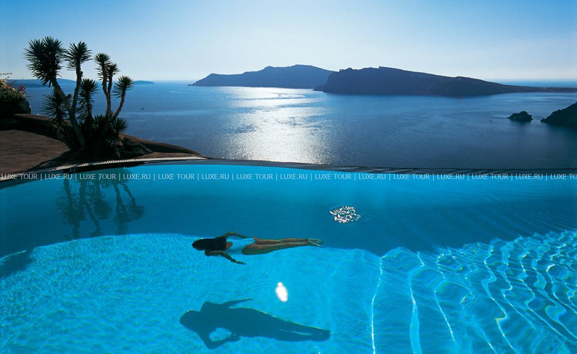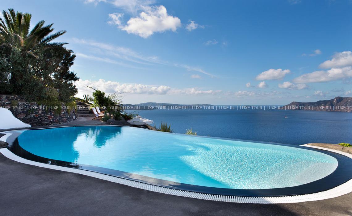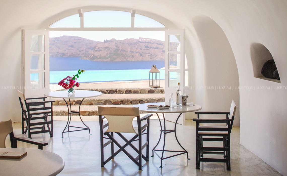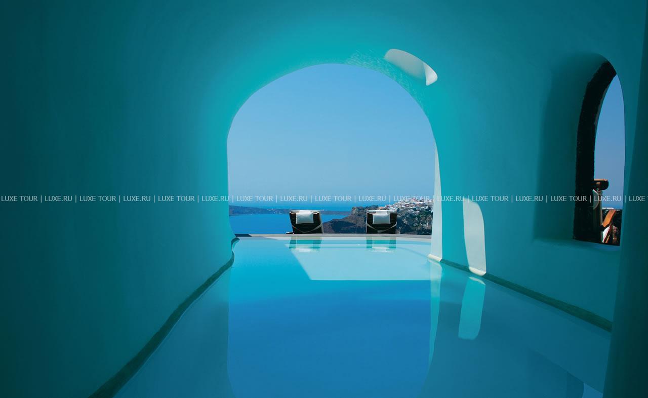 Отель расположен на северо-западном побережье острова Санторини, рядом с деревней Ойя, в 5 км от пляжа. Когда-то на этом месте находилась старинная рыбацкая деревушка, 300 лет назад рыбаки строили здесь свои дома, винодельни и конюшни, затем поселение опустело и пришло в упадок. И только во второй половине XX века тут появился первоклассный отель, построенный из природного вулканического камня. Комплекс напоминает древнегреческий амфитеатр: полукруглые здания расположены лесенкой, на нижнем ярусе находится каменная терраса с бассейном на самом краю обрыва. С террасы и из бассейна, которые не раз появлялись на обложках известнейших туристических журналов, открывается вид на Эгейское море.