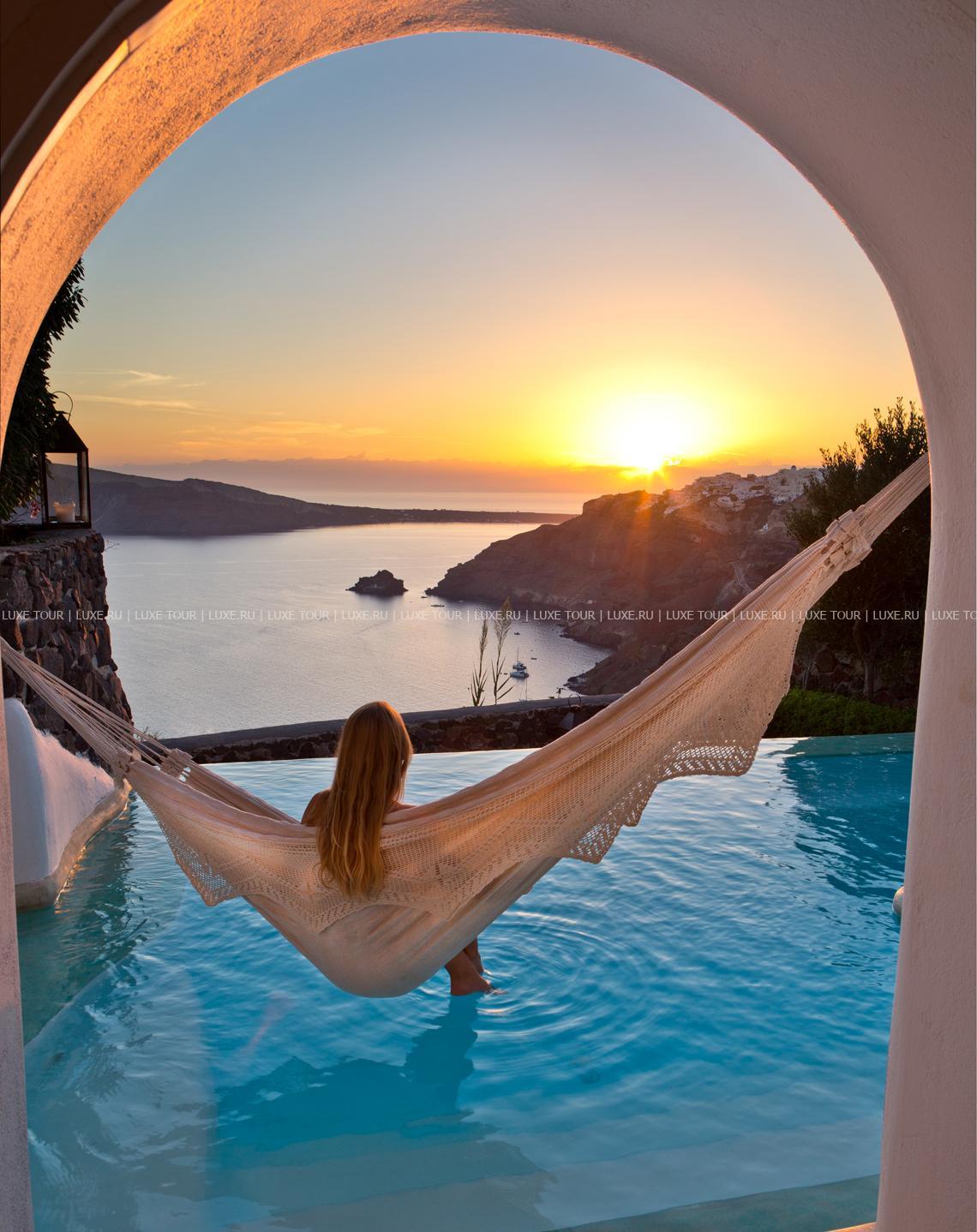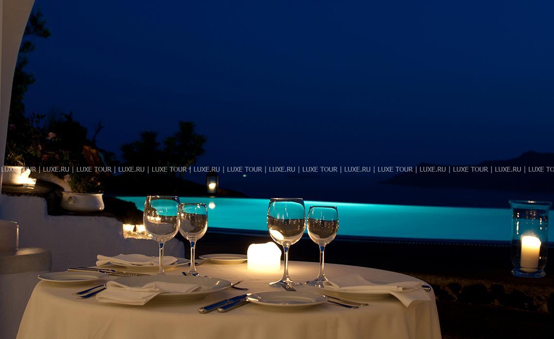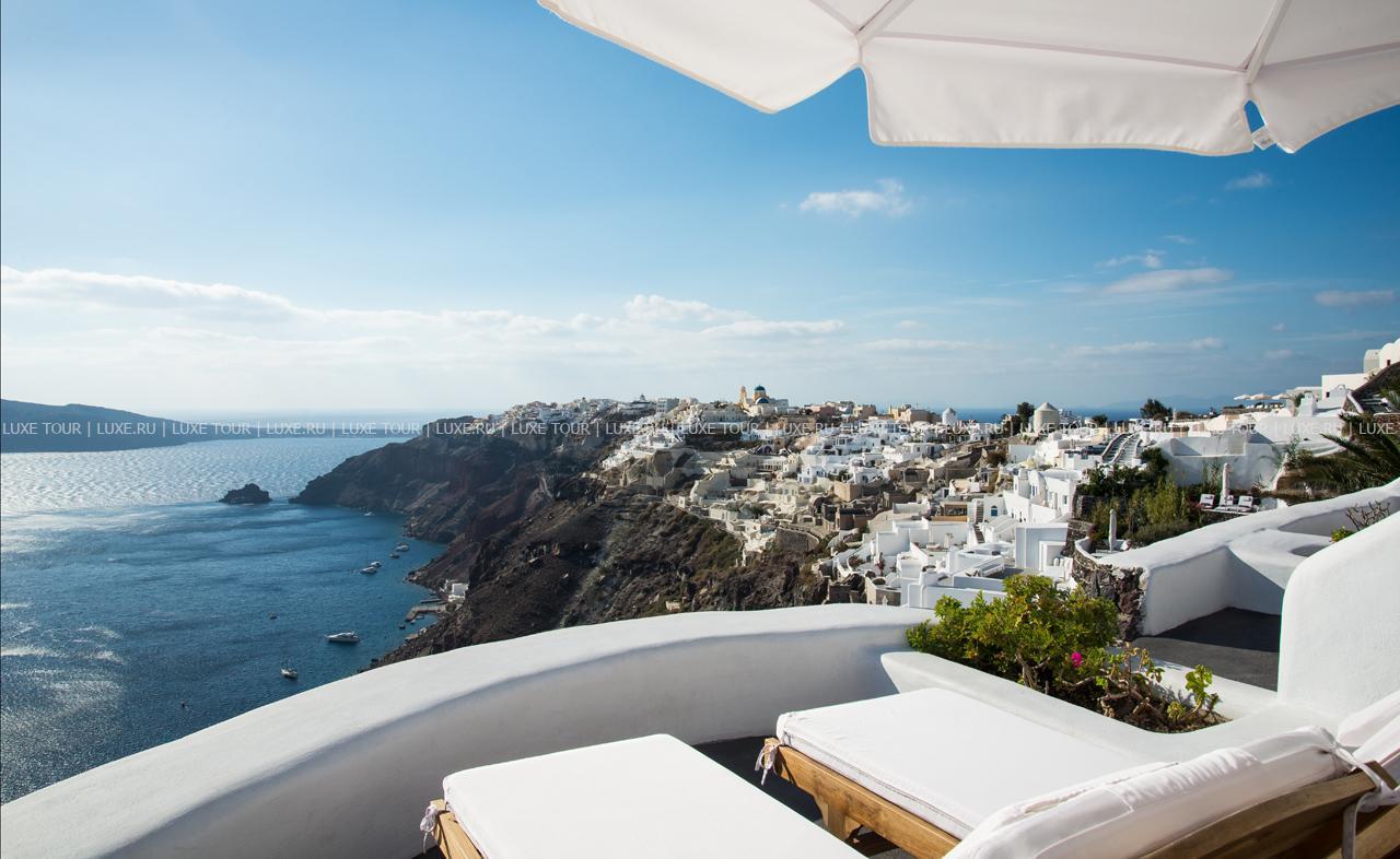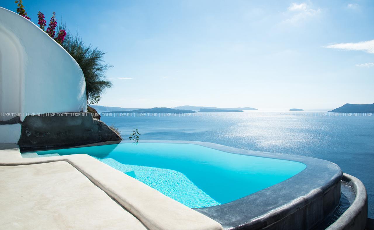 Отель расположен на северо-западном побережье острова Санторини, рядом с деревней Ойя, в 5 км от пляжа. Когда-то на этом месте находилась старинная рыбацкая деревушка, 300 лет назад рыбаки строили здесь свои дома, винодельни и конюшни, затем поселение опустело и пришло в упадок. И только во второй половине XX века тут появился первоклассный отель, построенный из природного вулканического камня. Комплекс напоминает древнегреческий амфитеатр: полукруглые здания расположены лесенкой, на нижнем ярусе находится каменная терраса с бассейном на самом краю обрыва. С террасы и из бассейна, которые не раз появлялись на обложках известнейших туристических журналов, открывается вид на Эгейское море.