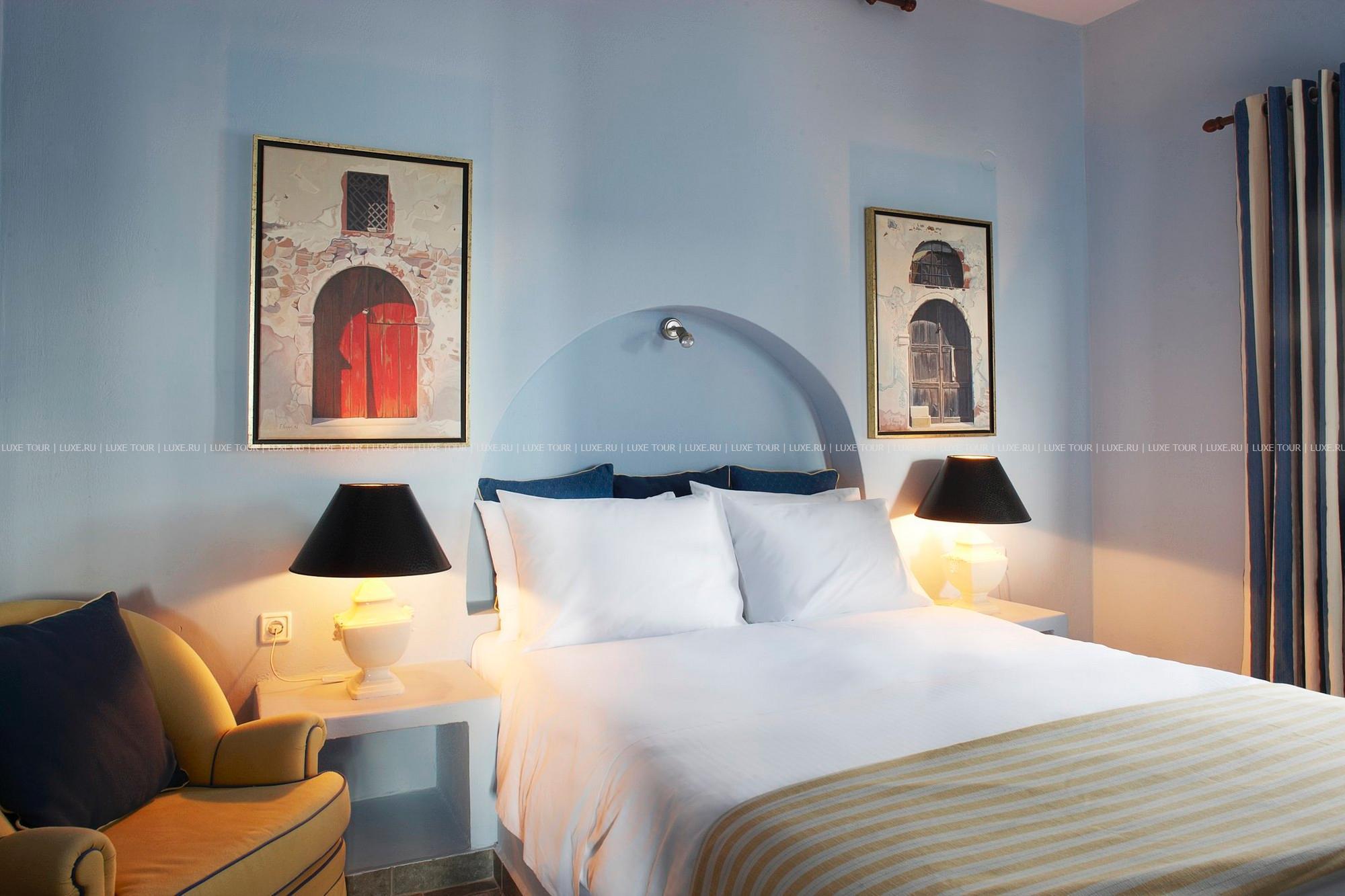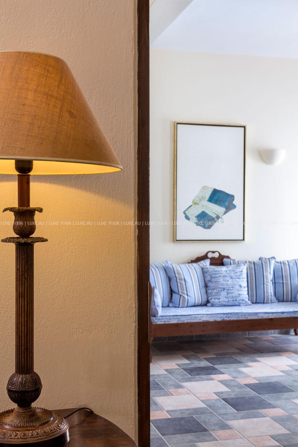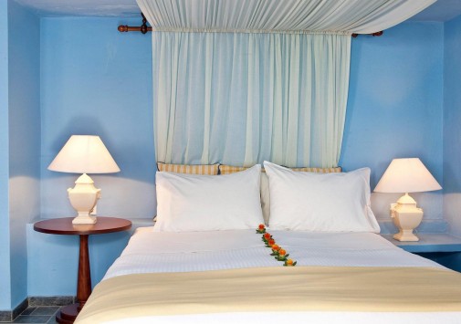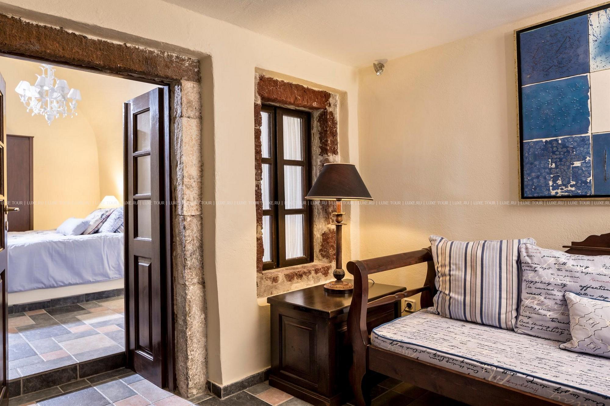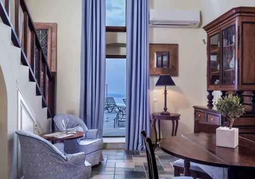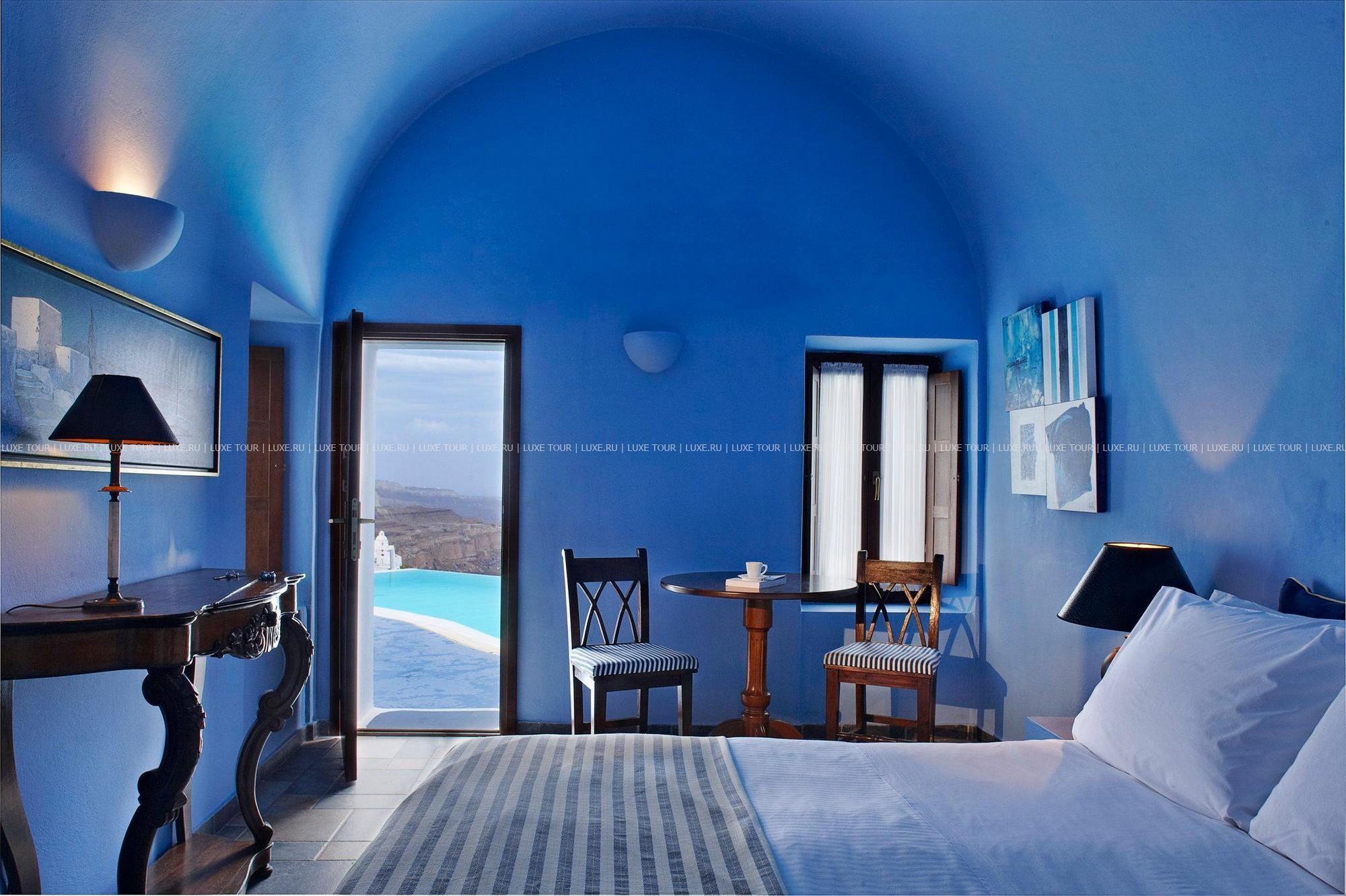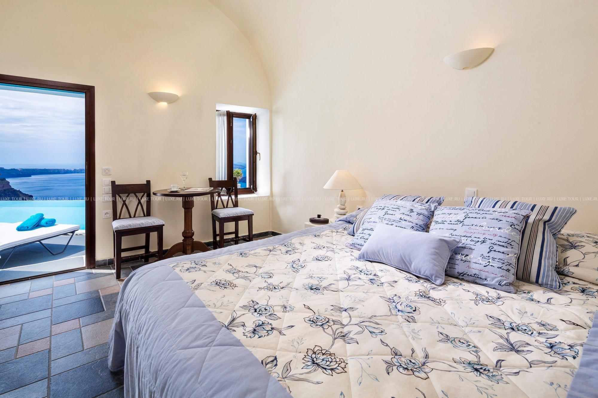 Отель расположен в столице острова Санторини — городе Фира, в 100 метрах от главной площади, в непосредственной близости от фуникулера, спускающегося к пляжу, в 8 км от аэропорта. Комплекс находится на прибрежной скале, с которой открывается вид на море, вулканический остров и знаменитые «солнечные закаты Санторини». В небольшом уютном отеле всего 10 номеров, он построен в 1997 году в традиционном средиземноморском стиле: белоснежное здание с многочисленными арками. В отеле есть собственный массажный кабинет, большой открытый бассейн, уютный ресторан и бар.