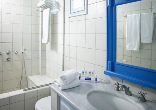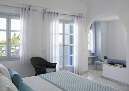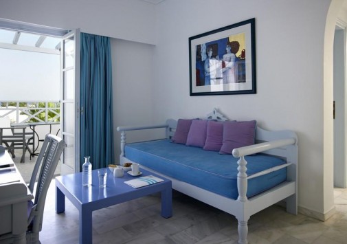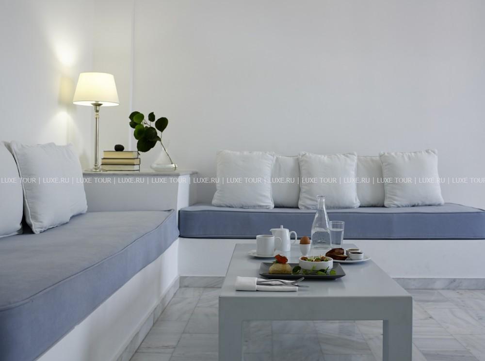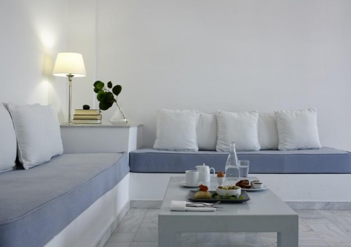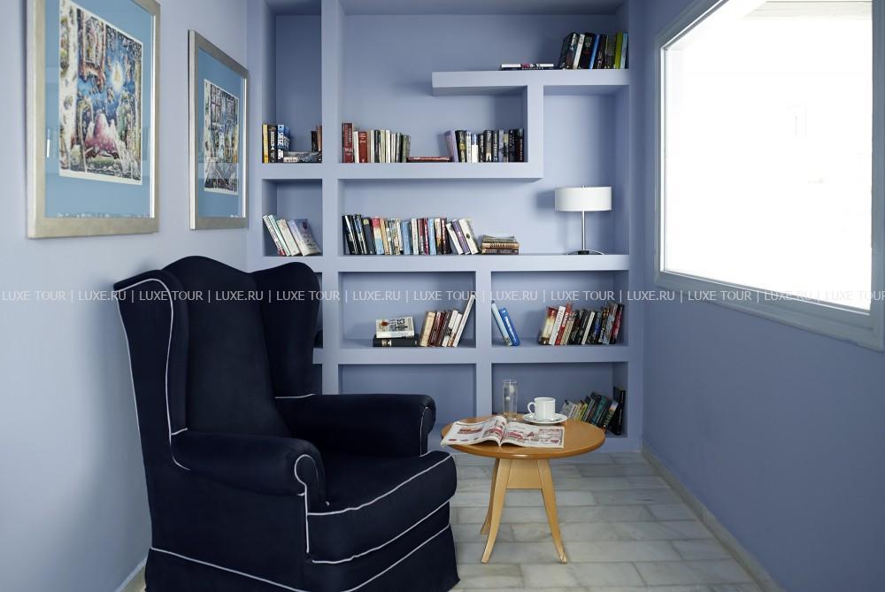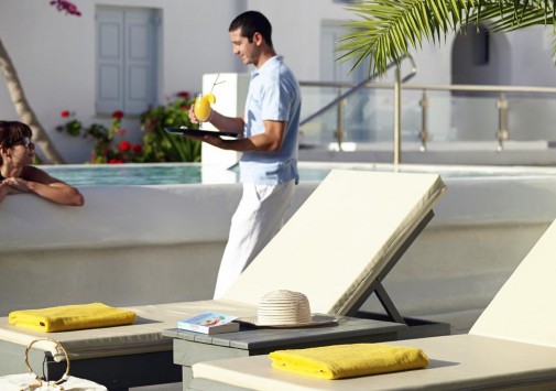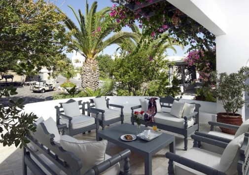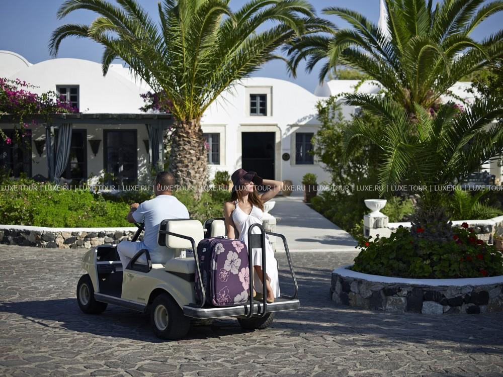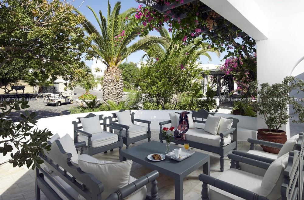 Для гостей — современно оснащенный конференц-зал на 150 человек, с внутренним двориком, бизнес-центр с Интернет–уголком, просторный сад площадью 1000 кв.м с фисташковыми деревьями, художественная галерея, бильярд, автомобильная парковка, дважды в день бесплатный автобус-шаттл до города Фира, услуги прачечной и химчистки.
