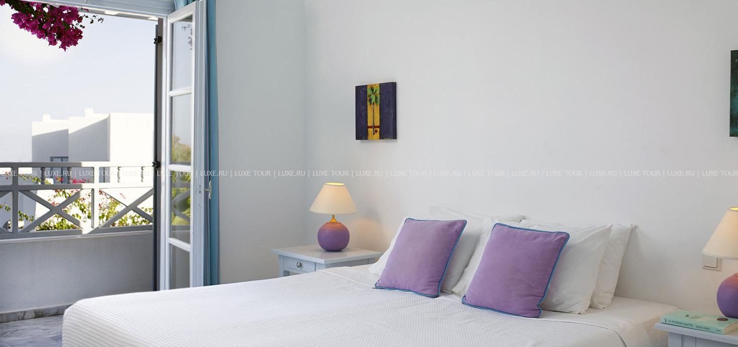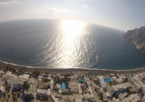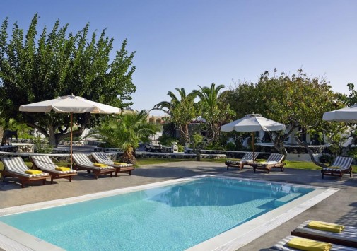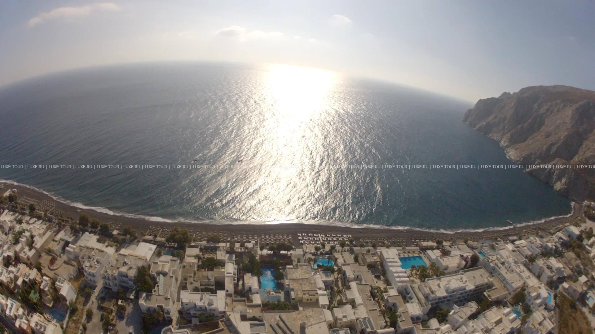 В нескольких метрах от отеля находится оборудованный пляж с вулканическим «черным» песком Kamari.