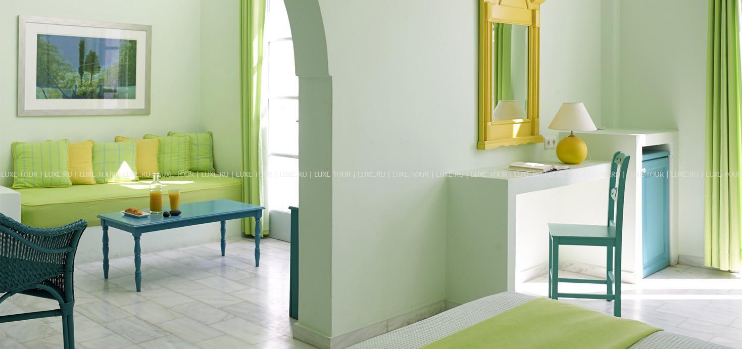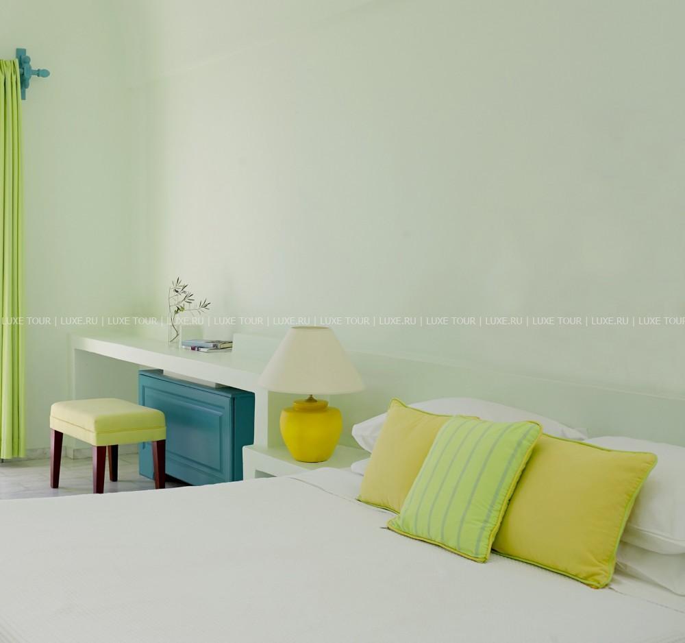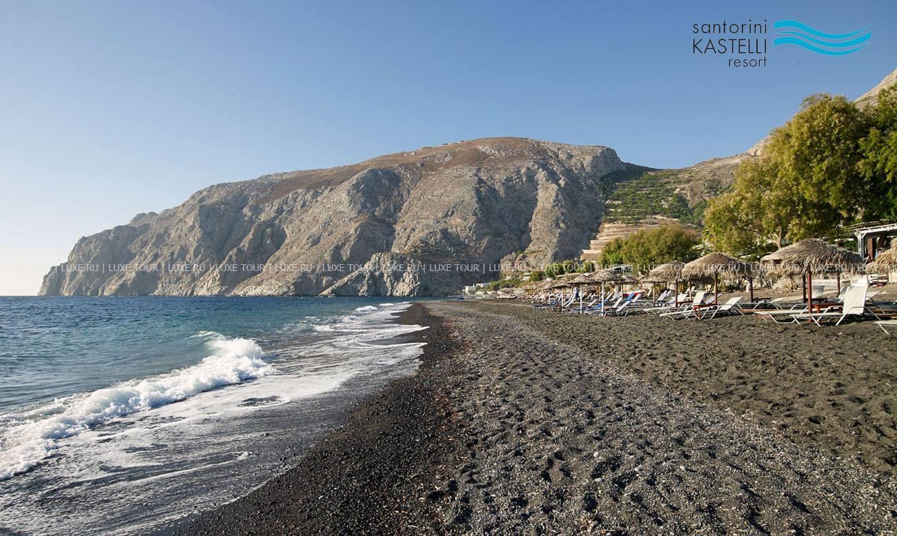 Здания Santorini Kastelli Resort, выполненные в архитектурном стиле Кикладских островов, с белоснежными стенами и яркими контрастирующими цветами отделки, расположены на берегу лазурного Эгейского моря, в окружении просторного, площадью 1000 кв.м, сада с фисташковыми деревьями, рядом с древним городом Тира и необычным пляжем Kamari с «черным» вулканическим песком. В комфортабельных номерах — элегантные интерьеры в теплых тонах, сочетающие современный дизайн и местные мотивы, с арками, изящной мебелью, оригинальными украшениями в греческом стиле, балконами и верандами с чудесным видом на море и окружающие ландшафты. В отеле открыт Оздоровительный/СПА Центр, включающий тренажерный зал, джакузи, сауну, турецкую баню, салон красоты, а также процедурные и массажные кабинеты, предлагающие большой выбор различных видов массажа и СПА услуг.