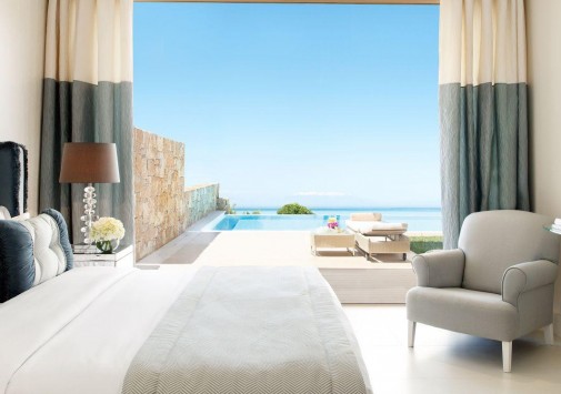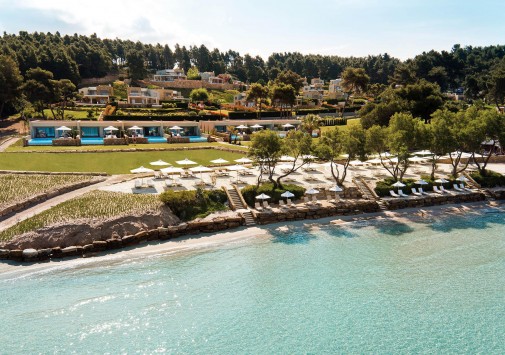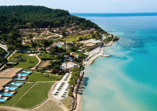 Отель расположен в северной части Греции, на побережье полуострова Кассандра, в 80 км (45 минут езды) от международного аэропорта города Салоники. Возможен заказ трансфера на вертолёте - продолжительность 20 минут.