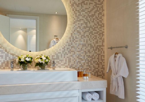 Подогреваемые: бассейн с пресной водой и отдельный бассейн для детей (190 м2), новый Infinity бассейн. Шезлонги с комфортными матрацами, зонты и пляжные полотенца предоставляются бесплатно. На пляже и у бассейнов дежурят спасатели. Есть кабинки для переодевания и душевые.