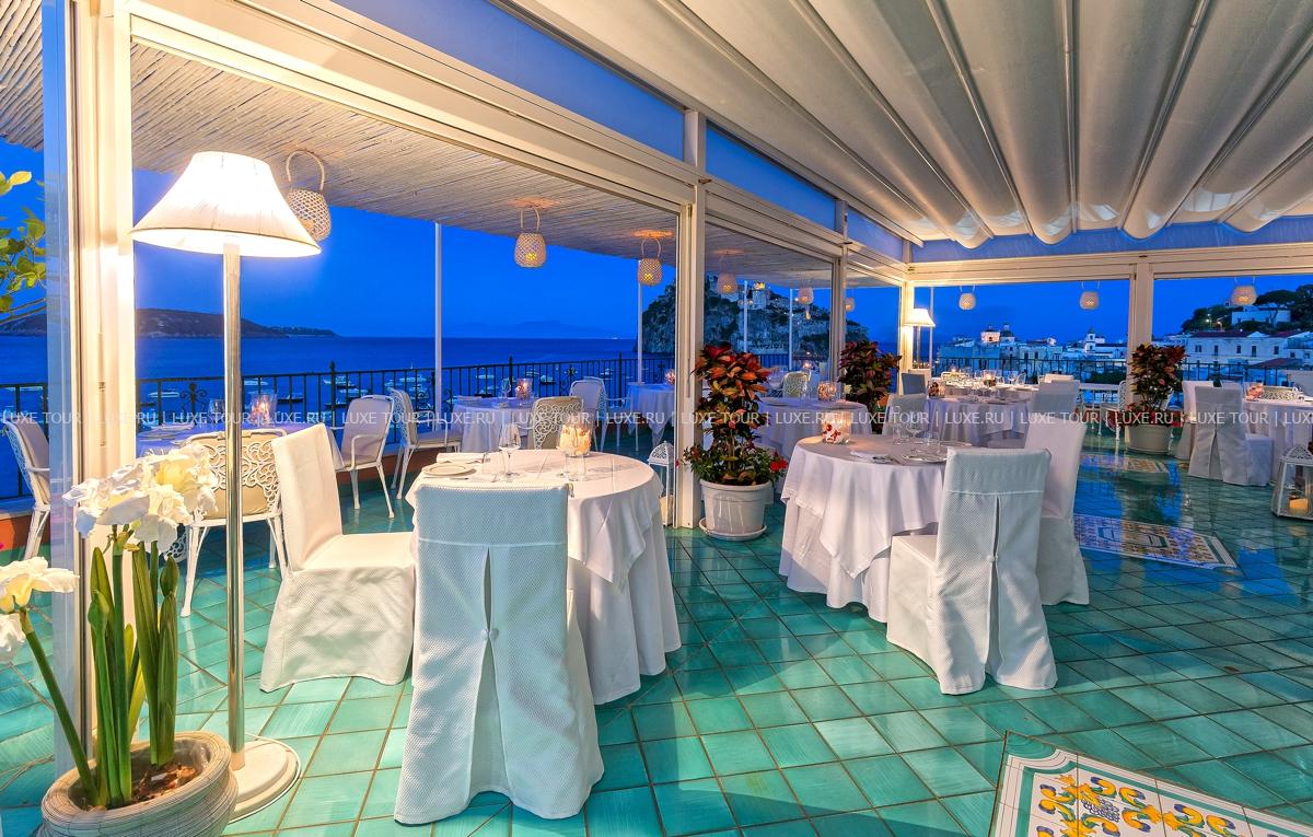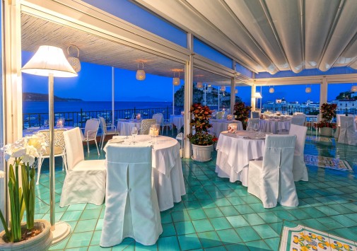 В прибрежном ресторане a la carte, полы которого отделаны великолепной изразцовой плиткой Vietri, подаются деликатесы из морепродуктов и блюда местной кухни.
