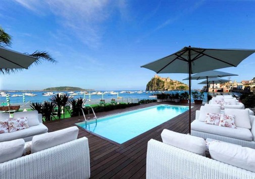 Элегантное здание Miramare e Castello Искья, построенное в стиле средиземноморской виллы, расположено на самом берегу Тирренского моря, у частного пляжа и рядом с центром столицы острова — Искья Понте. Внутреннее убранство отеля и интерьеры комфортабельных номеров выполнены в изысканном стиле, отражающем традиции Средиземноморья, а виды, открывающиеся из отеля восхищают необыкновенной красотой: старинный Арагонский замок, величественный вулкан Эпомео, сверкающая гладь моря и виднеющиеся вдали острова Вивара, Прочида и Капри. Помимо пляжного отдыха, к услугам гостей Miramare e Castello Искья — прекрасно оборудованный СПА центр с крытым гидромассажным бассейном, фитнес-залом и салоном красоты, открытые джакузи на солнечной террасе с садом, два ресторана с превосходной кухней, бар на пляже и элегантный пиано-бар, современно оснащенный конференц-зал.