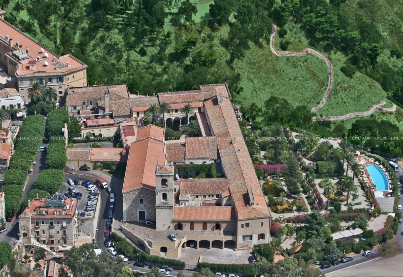 Отель расположен на восточном побережье Сицилии, на скале в историческом центре Таормины, в 68 км (часе езды на автомобиле) от международного аэропорта Катании и в 292 км (примерно в 3 ч. 15 мин. езды на автомобиле) от международного аэропорта Палермо.
