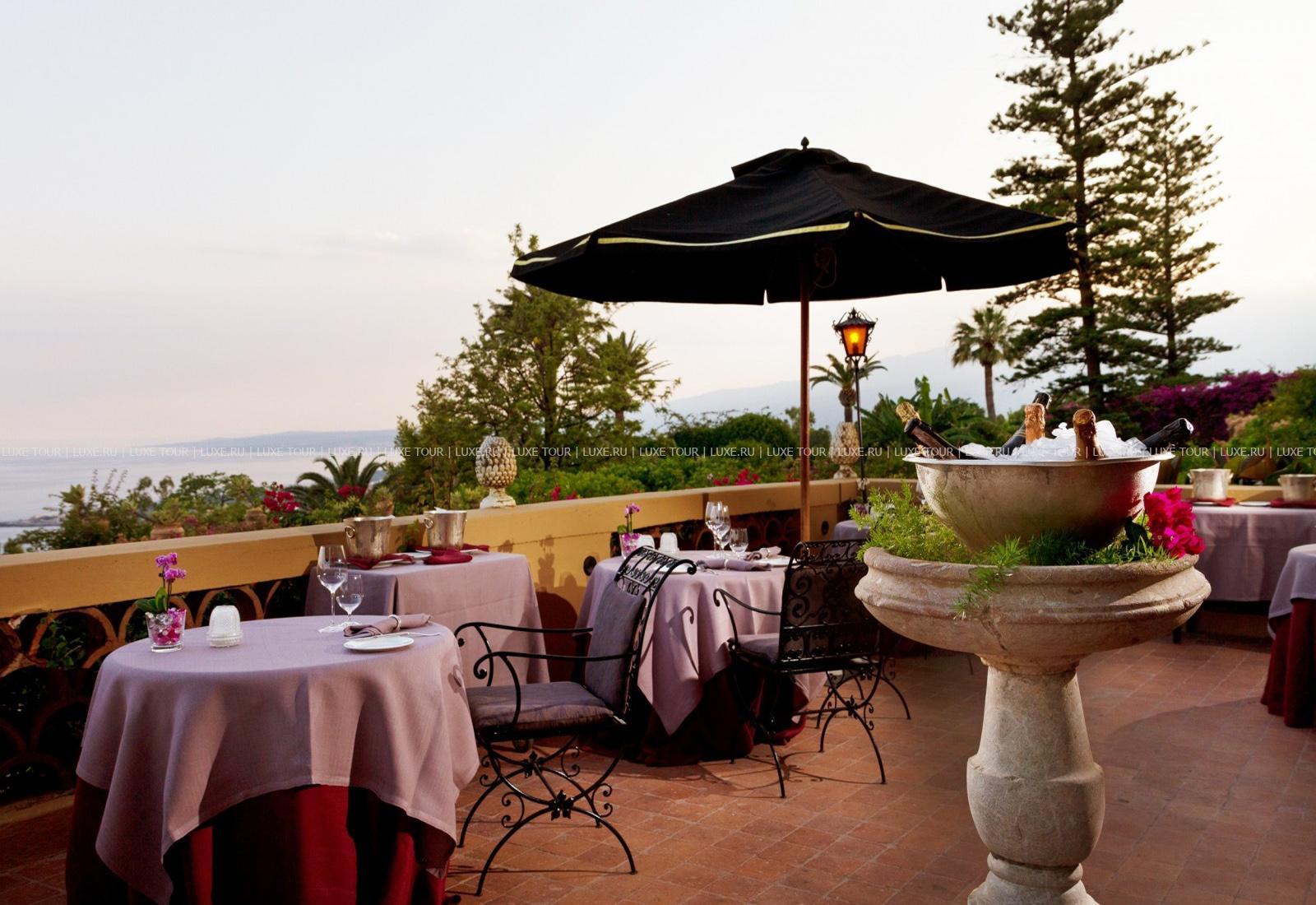 • Гастрономический ресторан Principe Cerami  с панорамным видом на залив Таормина представляет деликатесы сицилийской кухни.