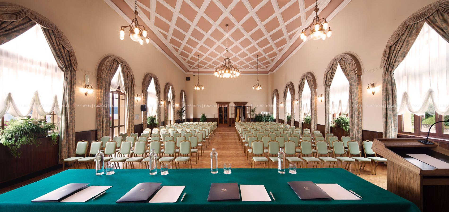 Парковка для автомобилей, причал для лодок, 6 конференц-залов с новейшим оборудованием, террасы.