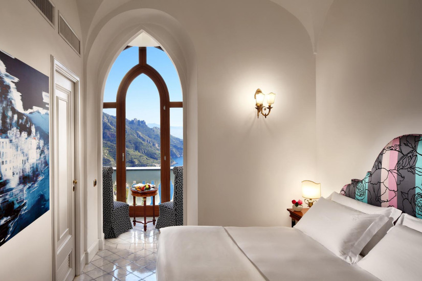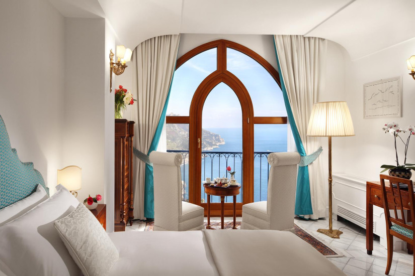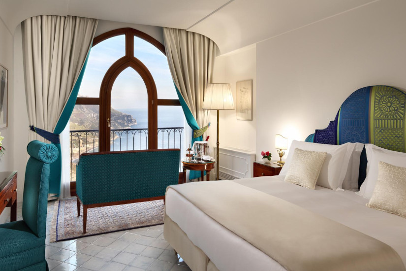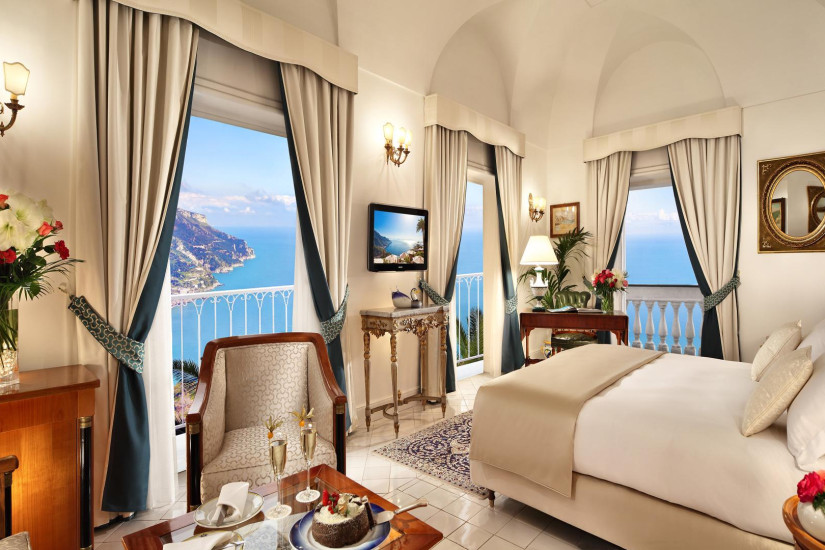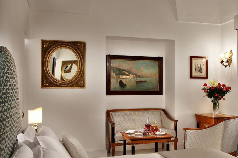 - 100 м2 + терраса 50 м2. Самый большой и элегантный номер отеля, расположенный на последнем этаже здания. Состоит из спальни с кроватью "king-size" и ванной комнаты с гидромассажной ванной и отдельным душем, гостиной комнаты с обеденной зоной и дополнительной ванной комнатой. На верхнем этаже номера располагается зона отдыха с выходом на просторную террасу с джакузи и обеденной зоной, откуда открывается панорамный вид на Амальфитанское побережье.