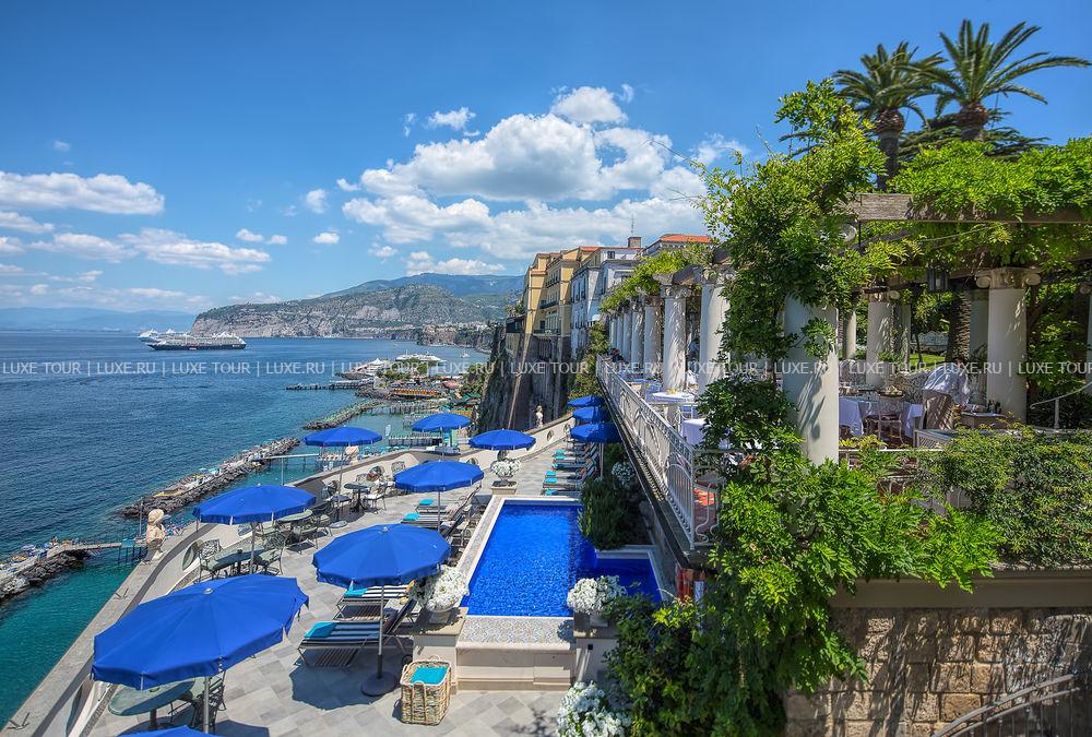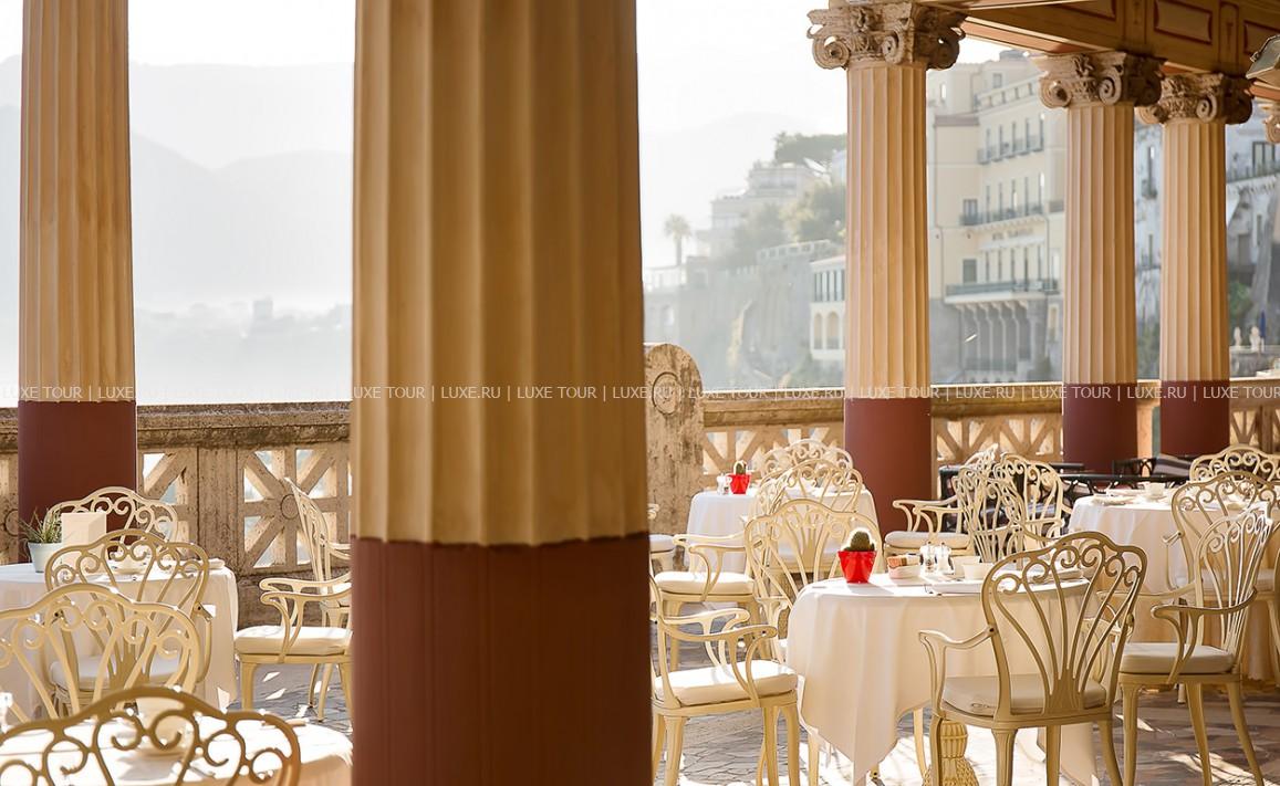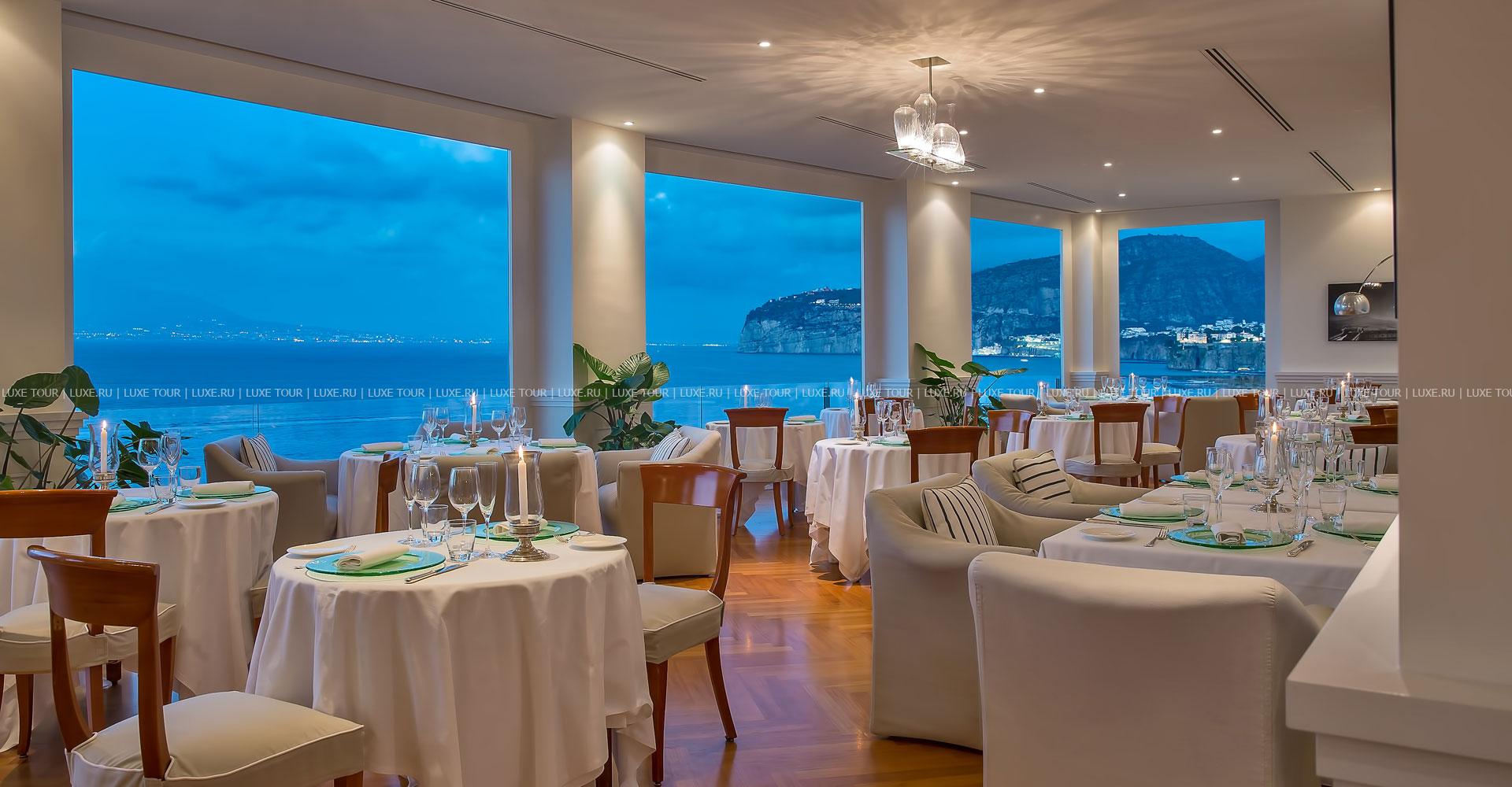 На террасе отеля The Pergola с панорамным видом на Неаполитанский залив расположен ресторан и снэк-бар, летом работает пиано-бар.