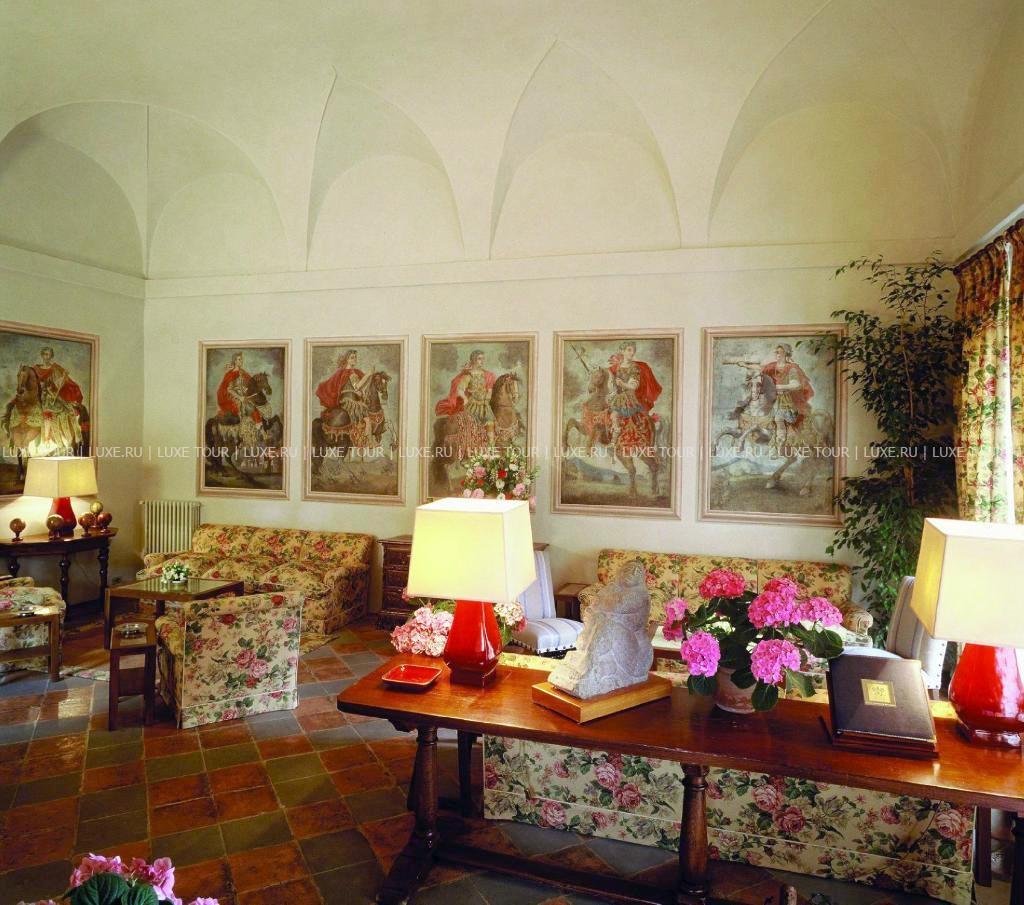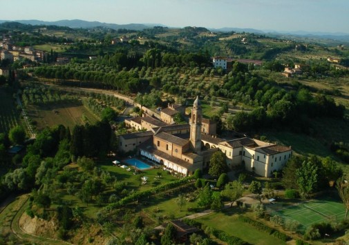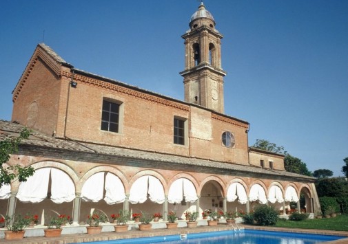 Отель расположен в пригороде Сиены, в 1,5 км от Пьяцца дель Кампо — центральной площади города. Отель занимает старинное здание с башней, сводчатой галереей и квадратным внутренним двором, построенное в 1314 году. Вплоть до конца XIII века здесь находился картезианский монастырь последователей святого Бруно (такие монастыри называют Чертоза, что стало частью названия отеля). Из окон отеля открывается вид на окружающие отель оливковые рощи и виноградники, а также на средневековую часть Сиены, Кафедральный собор и фонтан. В отеле есть ресторан, зал Emperor's Hall, стены которого украшают портреты двенадцати римских императоров, библиотека с антикварным книжным шкафом, теннисный корт, бассейн. Принимаются дети старше 12 лет. Отель закрыт с 19 по 29 декабря.