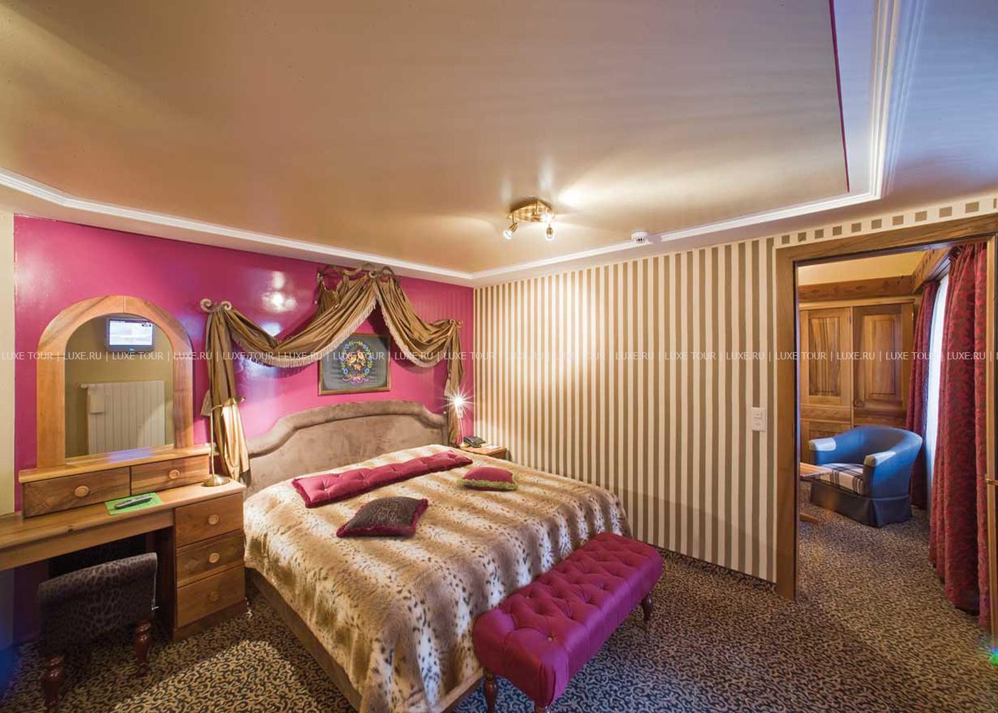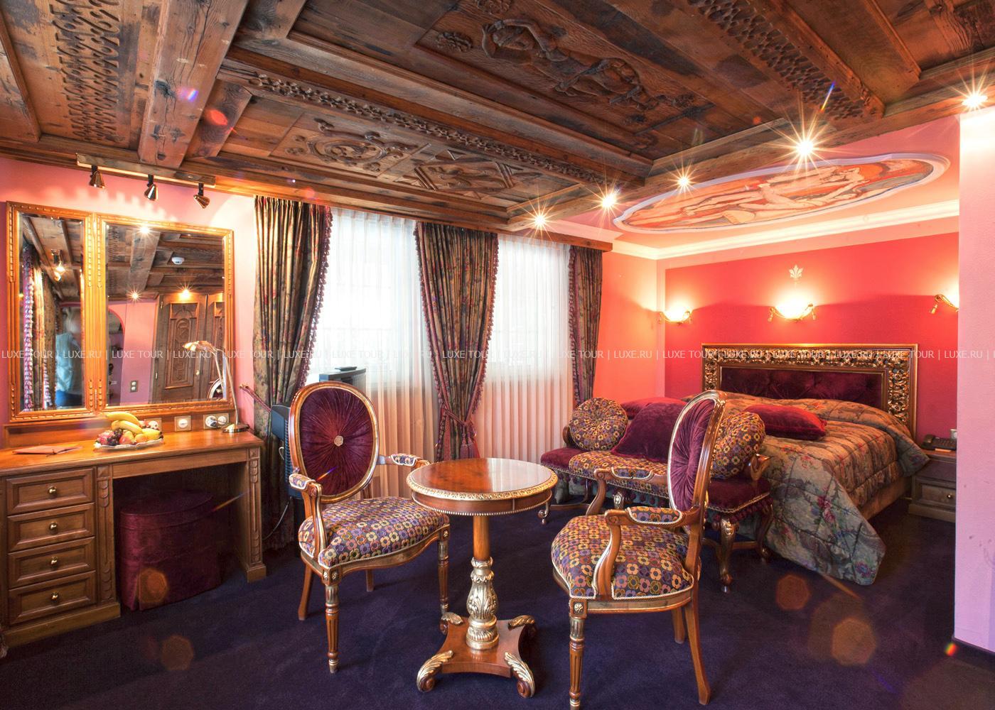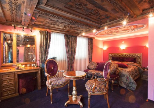 Четырехзвездный отель Alex предлагает гостям уютные номера различных категорий, оформленные в традиционном альпийском стиле. Отделка из натурального дерева, пышные ковры, массивные балки под потолком, искусные панно, элегантная мебель, создающая эффект уюта и яркие ткани — каждая деталь внутреннего убранства перекликается с общей концепцией гостиницы.