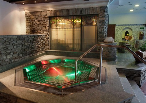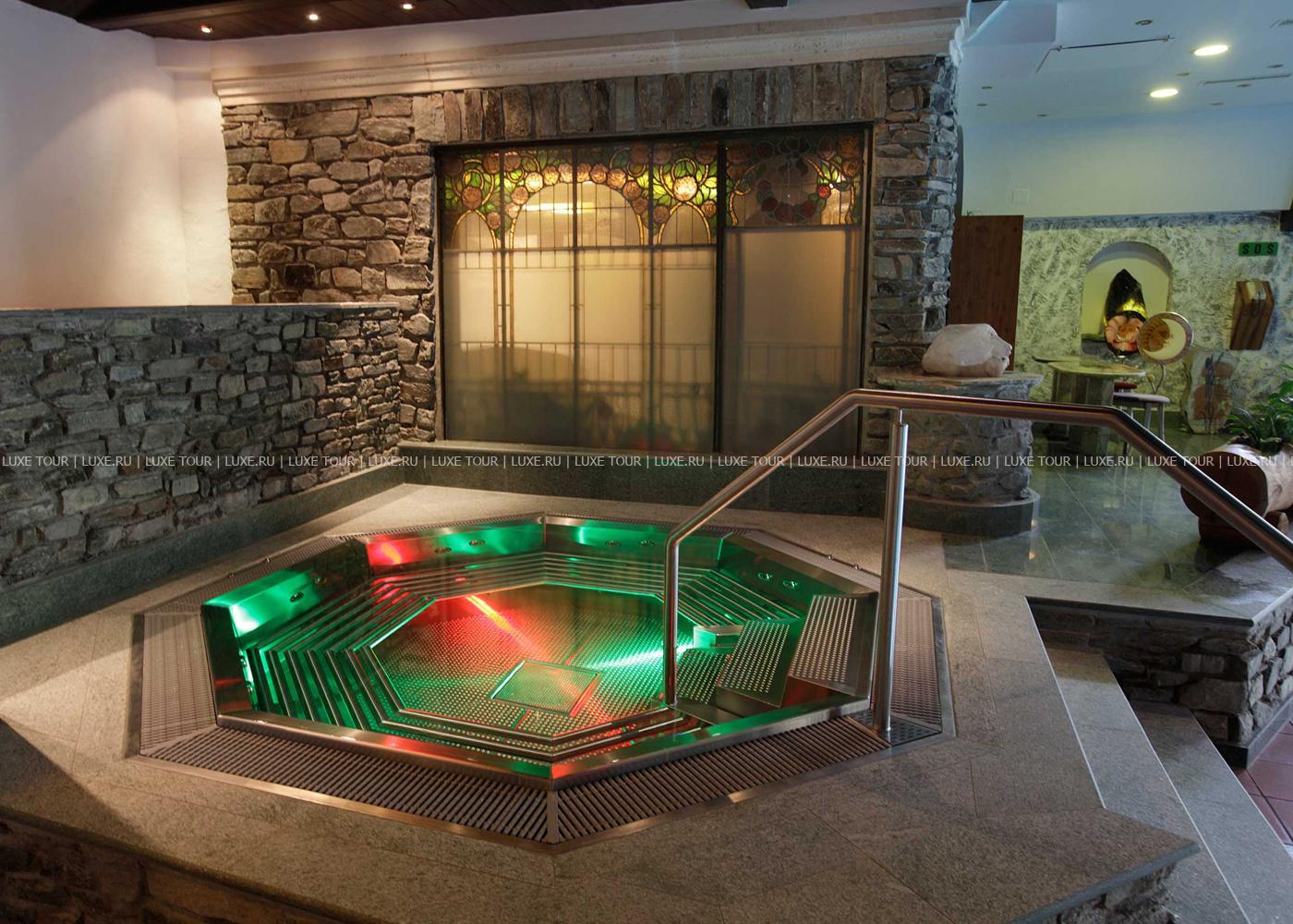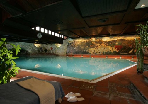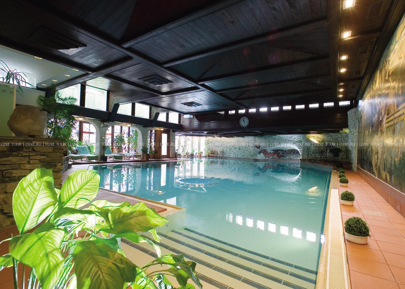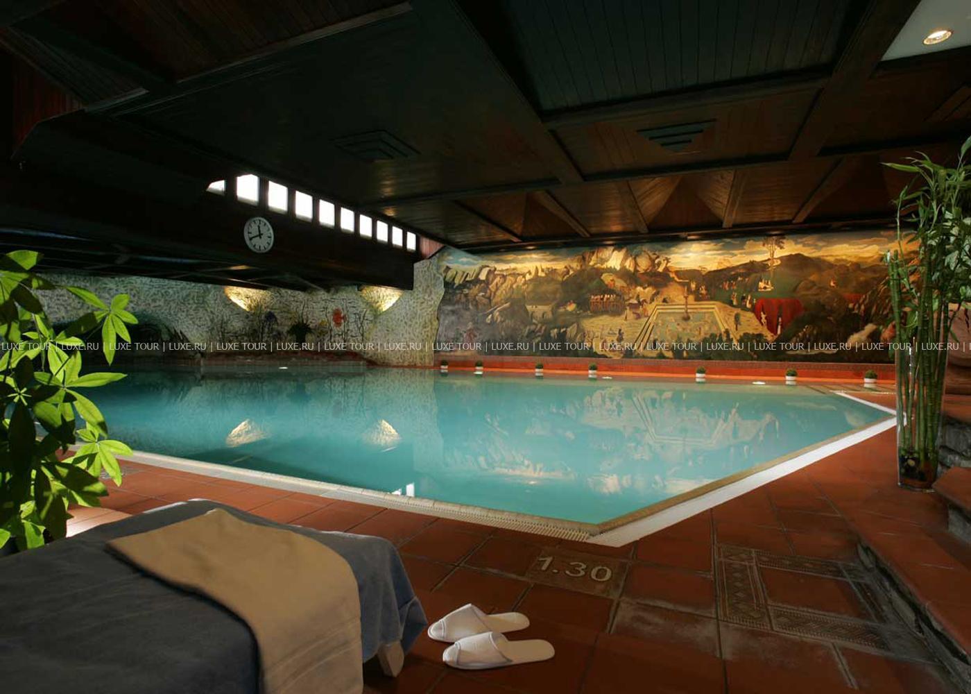 В отеле имеется крытый бассейн (25х20 м) с гротом, одна из стен которого состоит из панорамных окон, а другая — расписана панорамой горного пейзажа.
