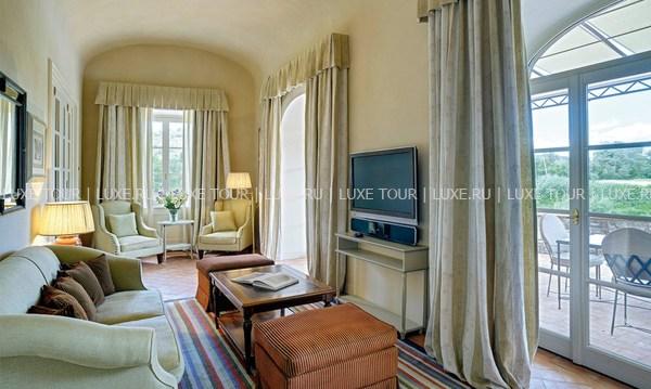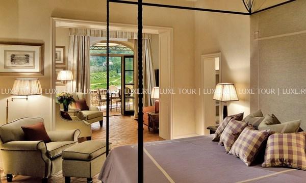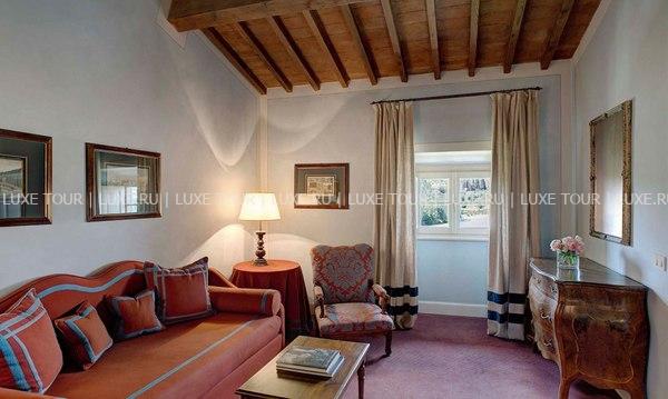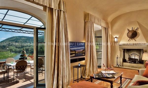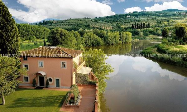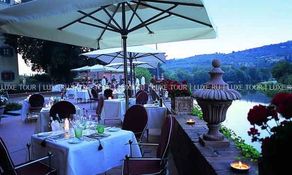 Отель расположен на набережной реки Арно, на фоне холмов, окружающих Флоренцию. Комплекс гостиницы состоит из трех вилл, построенных в XVI веке, во времена Медичи: Noble Villa (Villa Nobile), Old Mill (Vecchio Frantoio) и Little Villa (Villina). В 1948 году бывшая аристократическая резиденция была превращена в элитную гостиницу, привлекающую знаменитостей со всех уголков Европы. В разное время здесь останавливались Кларк Гейбл, Уинстон Черчилль, Элизабет Тейлор, а Дэвид Боуи праздновал здесь свою свадьбу. Богатейшая история, дух роскоши и богатства эпохи Ренессанса и необыкновенный шарм этого утонченного отеля проскальзывают в каждой детали его изысканного убранства. Дизайн интерьеров выполнен во флорентийском стиле, но каждый номер имеет свои отличительные особенности. Просторные и светлые спальни и гостиные обставлены стилизованной деревянной и кованой мебелью, а ткани, использовавшиеся для отделки, были изготовлены на одной из старых текстильных фабрик Флоренции. Из большинства номеров открывается вид на великолепные тосканские пейзажи, размеренно несущую свои воды реку Арно и окружающие гостиницу сады, богатые фруктовыми деревьями и оливами.