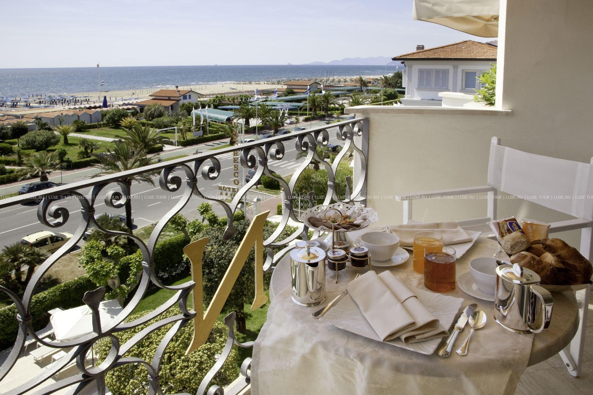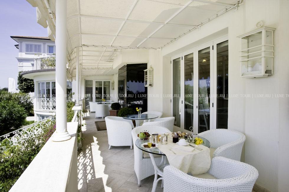 Отель расположен на Тосканском побережье Италии, на берегу моря, всего в нескольких минутах ходьбы от центра курортного города Форте дей Марми, в 35 км от аэропорта Пизы. Здание построено в современном стиле, совсем недавно оно было вновь открыто после реставрации. Ресторан отеля — La Terrazza считается одним из лучших в регионе. В отеле есть солярий, фитнес-центр, интернет-кафе, открытый бассейн с джакузи, американский бар, частный пляж, частная автостоянка, прокат велосипедов, а также поле для игры в гольф на 18 лунок. На крыше комплекса расположена открытая терраса с шезлонгами и джакузи, с прекрасным видом на море.