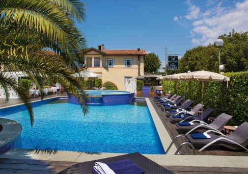 Отель расположен в знаменитом курортном городе Форте дей Марми. Комплекс состоит из двух небольших светло-песочного цвета вилл, построенных на рубеже XIX-XX веков, утопающих в зелени чудесного сада. Сразу после открытия отель стал популярным местом отдыха для европейской аристократии. Он и сегодня привлекает гостей со всего мира своей изысканной роскошью, уютной атмосферой, свойственной небольшим виллам. Отель украшен оригинальными скульптурными композициями, гравюрами, эстампами и хрустальными канделябрами, полы отделаны мрамором. В отеле есть уютный ресторан, бассейн с подогревом, частная парковка, возможна аренда автомобилей с водителем и услуги в проведении свадебных торжеств.