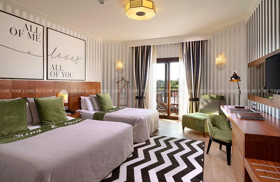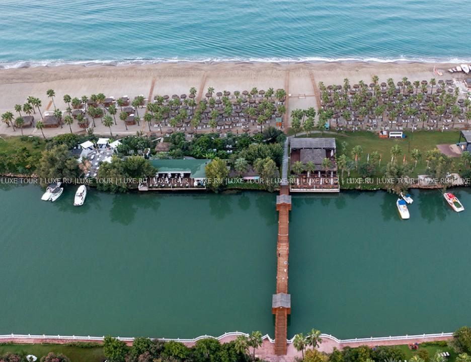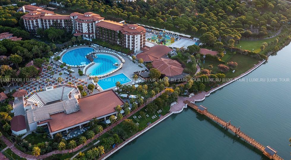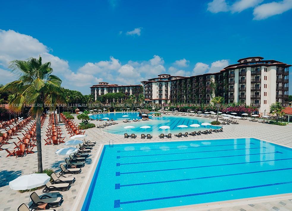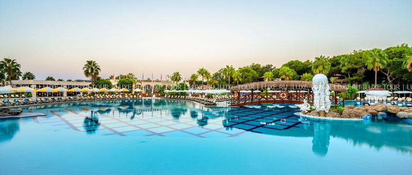 Отель расположен в Белеке, в 3 км от центра города. Комплекс находится в непосредственной близости от побережья. К отелю ведет подъездная аллея, а ворота стилизованы под античный портик с колоннами и статуей. По вечерам в амфитеатре устраиваются развлекательные шоу и концерты. Мощеные дорожки, ручьи, выложенные камнем, деревянные мостики делают парк прекрасным местом для прогулок. Пляж находится на песчаной косе, к которой ведет деревянный крытый мост. Любителям гольфа предлагаются поля, рассчитанные на 27 лунок. В отеле несколько уютных ресторанов, баров и кафе, центр здоровья, 4 открытых бассейна, крытый бассейн с подогревом и бассейн для детей, теннисные корты, 2 детских развлекательных клуба, аквапарк, бизнес-центр, 4 конференц-зала, торговый центр, парковка для автомобилей.