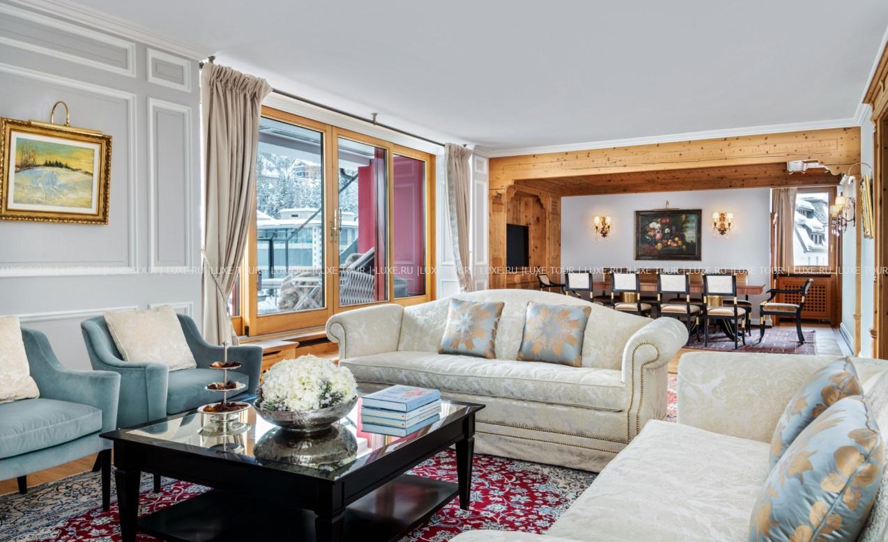 На берегу живописного озера в центре Санкт-Морица, в окружении чарующих пейзажей горной долины Энгадин расположен Badrutt’s Palace. Фешенебельный отель, открытый в 1896 году семьей Бадрутт, похож на сказочный замок, его башня стала символом курорта, а дворцовые интерьеры сохранили атмосферу Прекрасной эпохи: отделка из ценных пород дерева и мрамора, изящная антикварная мебель, старинные произведения искусства. При этом, гостей ждет весь спектр современных услуг – от элегантных комфортабельных номеров и гастрономических ресторанов, в числе которых IGNIV, удостоенный двух звезд Мишлен, и старейший в Швейцарии ночной клуб King’s Social House, до шикарного Spa-комплекса с бассейнами, галереи бутиков, детского клуба и разнообразия возможностей для отдыха и спорта. Badrutt’s Palace – исторический отель, сочетающий очарование прошлого и эксклюзивный сервис.
