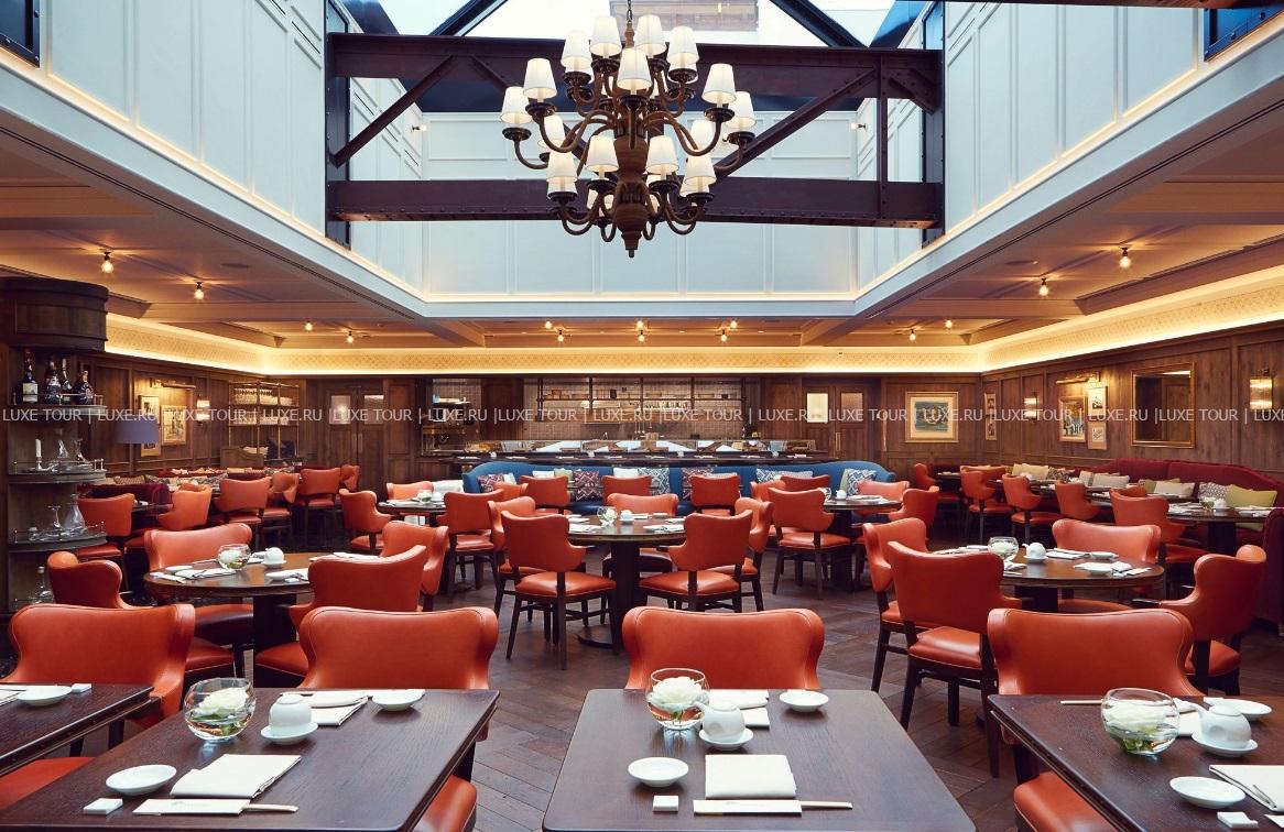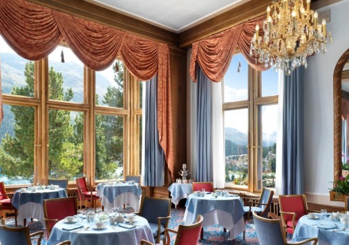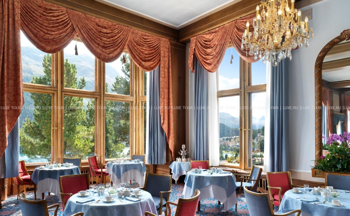 - В лобби-баре Le Grand Hall, известном как «гостиная Санкт-Морица», подают послеобеденный чай, икру, шампанское, а вечером звучит живая музыка.