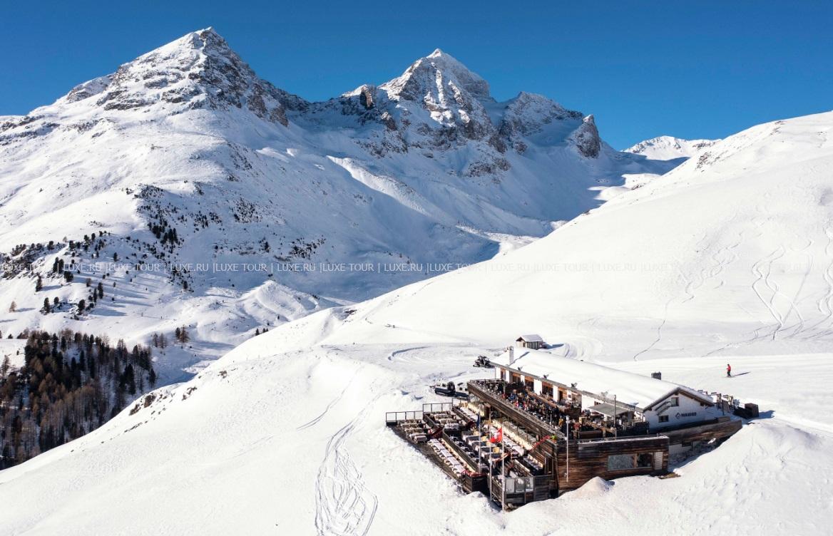 - Ресторан Paradiso St.Moritz, разместившийся на вершине горы, располагает солнечной террасой с фантастическим видом на Альпы и предлагает национальную и региональную кухню, коктейли, шампанское и зажигательные дискотеки.