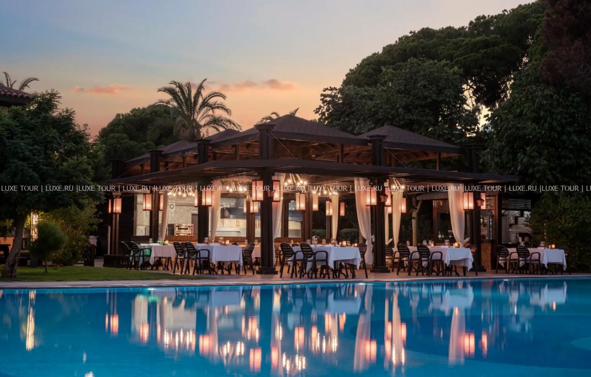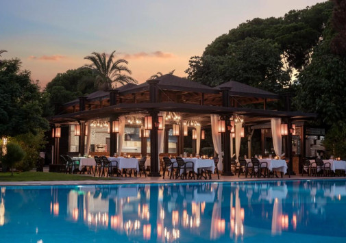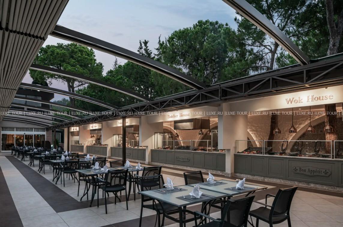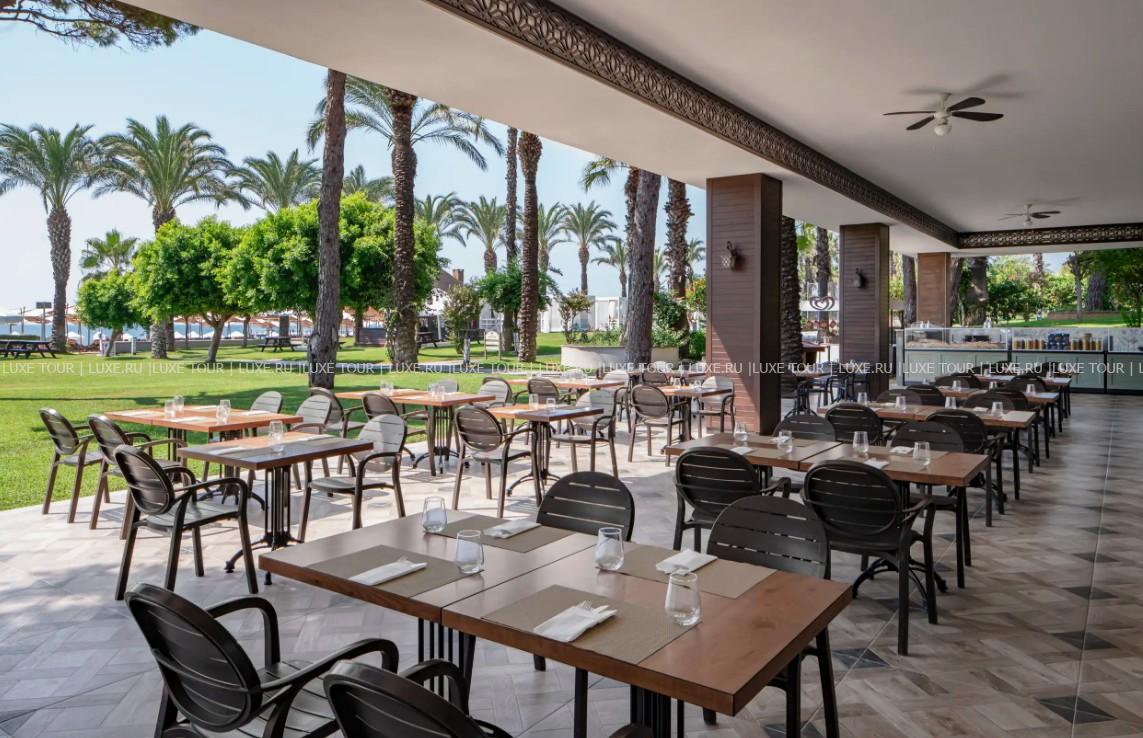 • В главном ресторане отеля Angora подают завтраки, обеды и ужины сервируют в виде шведского стола. Предусмотрено диетическое меню, детский стол и вегетарианские блюда. Проводятся тематические ужины, включая «турецкие вечера». К ресторану примыкает открытая терраса.