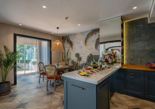• В барах у бассейна и пляжа подают закуски и прохладительные напитки.
